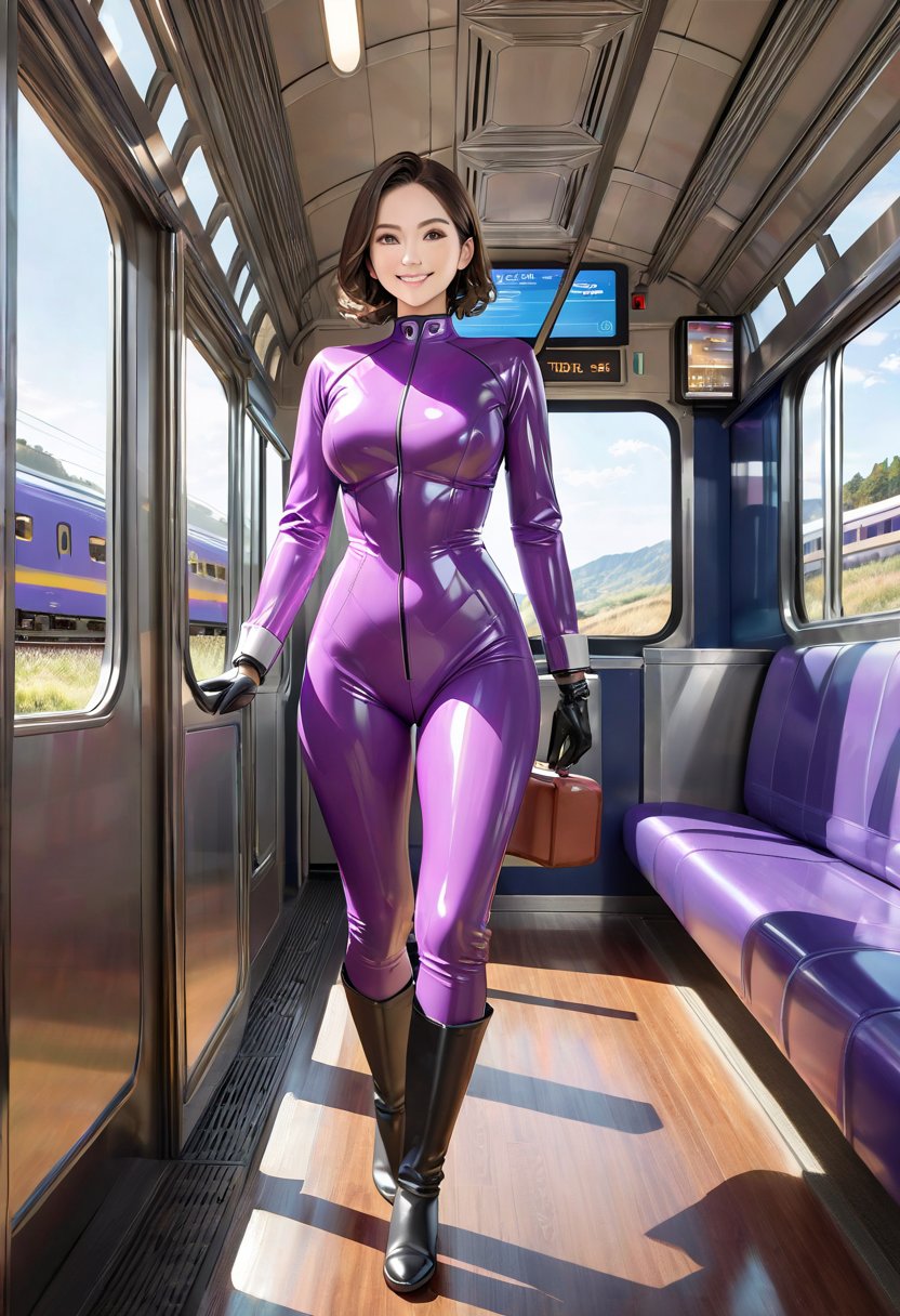紫ラバースーツ電車旅