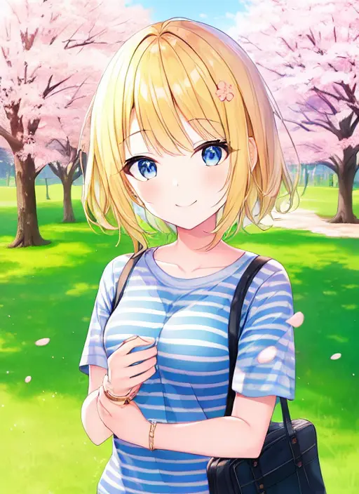 ほぼ同じプロンプト(春の大学、ボーダーシャツ)で作成。