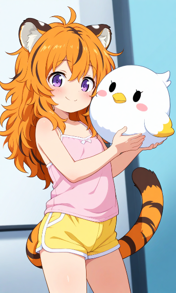 (´つヮ⊂)ウオォォww まさか、返しイラストを作って頂けるとは思ってなかったので、メチャクチャ嬉しいです! 。゚(゚ ˆωˆ ゚)゚。 ありがとうございます! 大きめな白雀ちゃんのぬいぐるみを抱いている虎娘ちゃん! (๑•∀•๑)スゥンバラスィィィィ