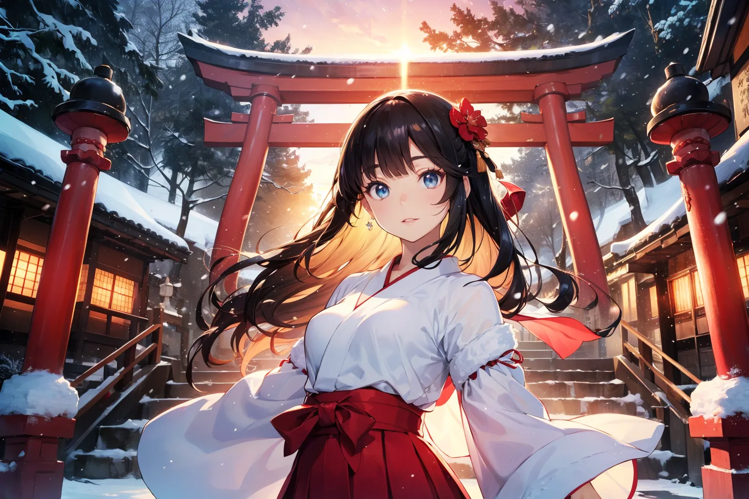 雪がちらつく中、怜花は大凶のおみくじをしっかりと結びつける。二人の間には、初詣の冷たい空気の中に、ほんのりとした温かさが漂っていた。