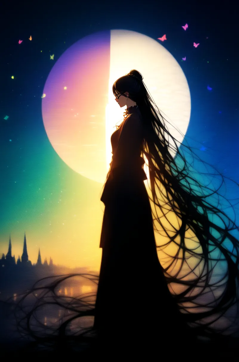影絵の人物を際立たせたい一心で月を大きくしてみました。最後のイラストが一番お気に入りdeath♥🌕️