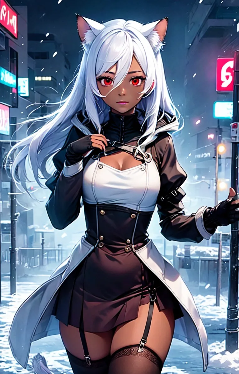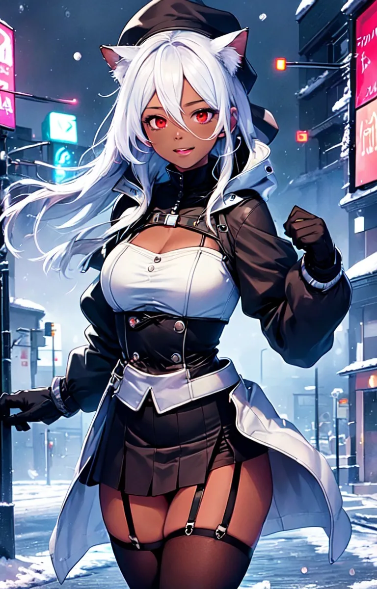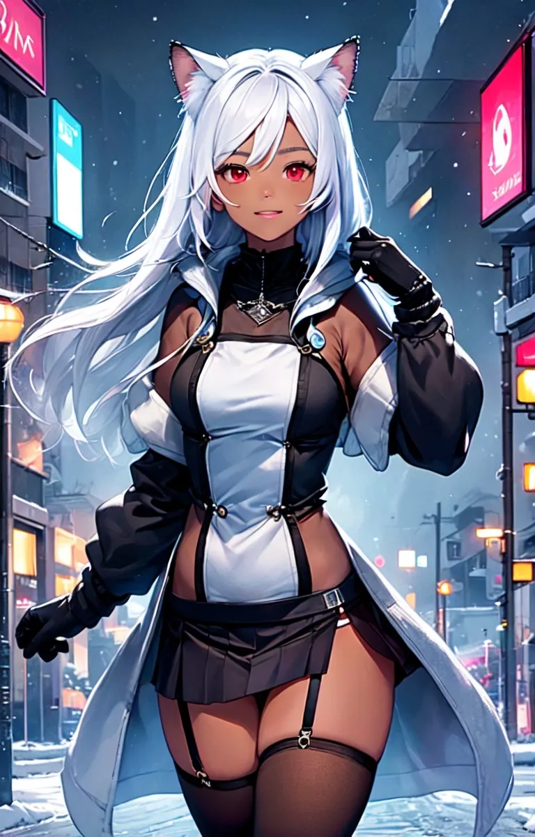 手袋をした褐色猫娘