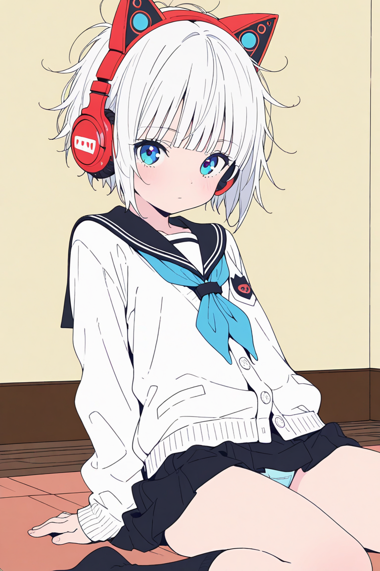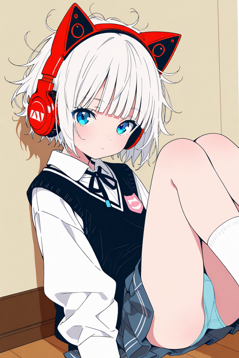 猫耳ヘッドホンな女の子のパンチラ