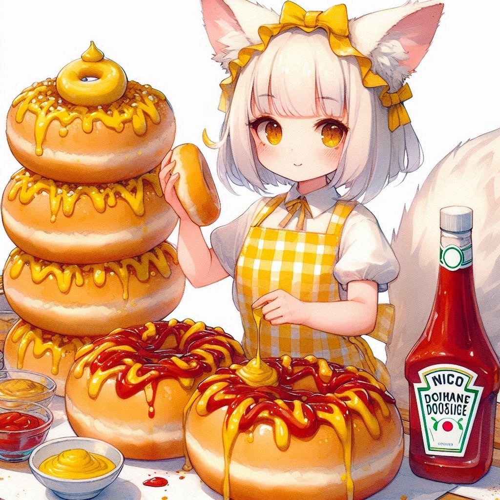 マスタードとケチャップもりもりの🍔も🌭もサイコーだよなぁー!!じゃあ🦊に🍯かえしてくるわー👋