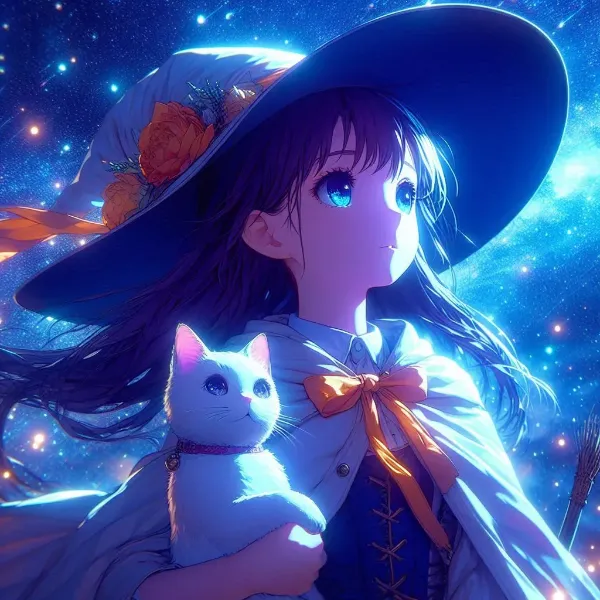 “Moments of Magic, AI Illustration of a Witch Apprentice and Her Cat”