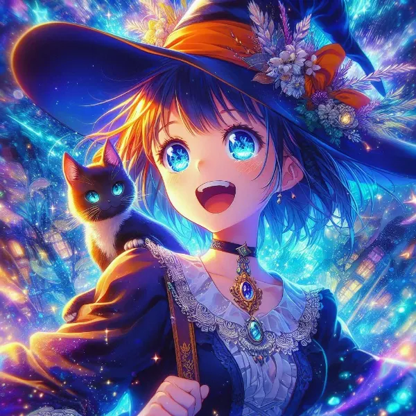 “Moments of Magic, AI Illustration of a Witch Apprentice and Her Cat”