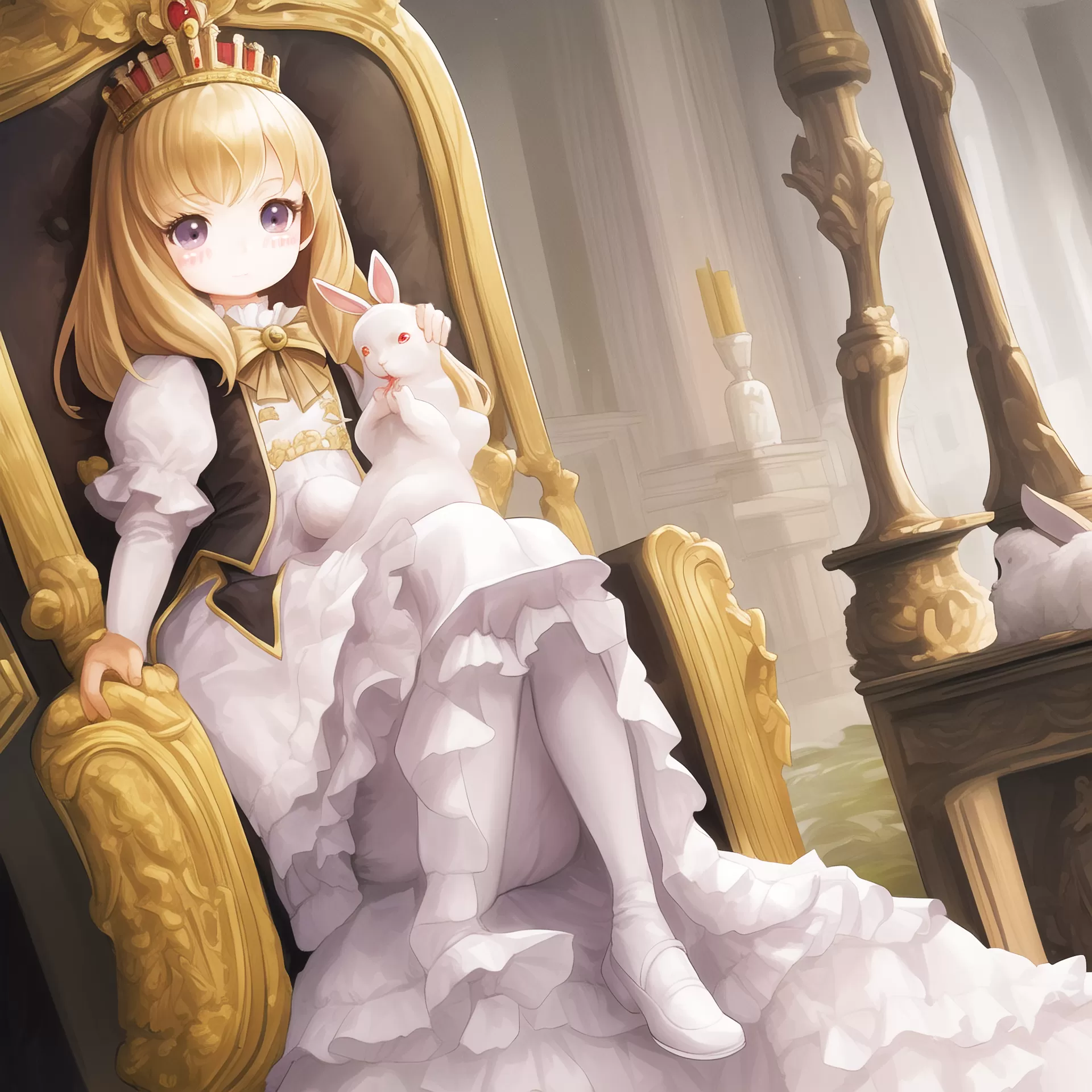 王宮でウサギを愛でるお姫さま