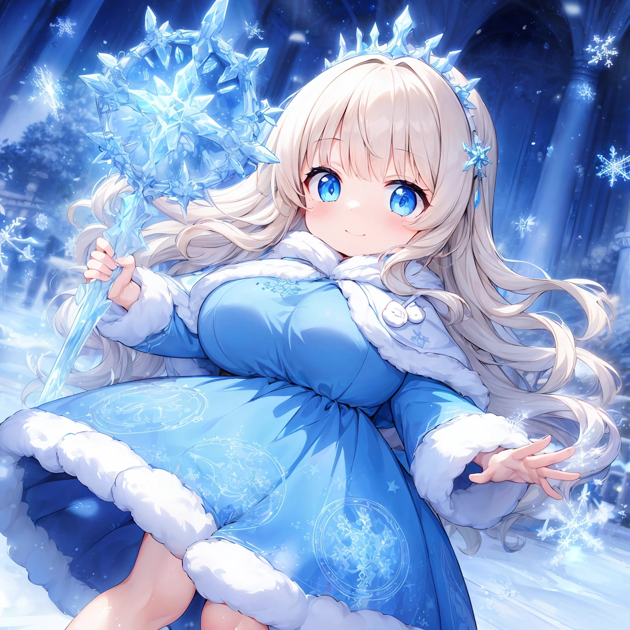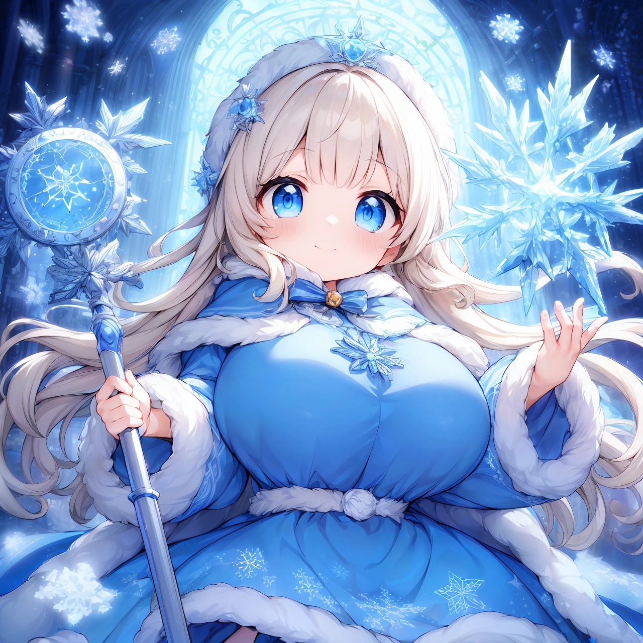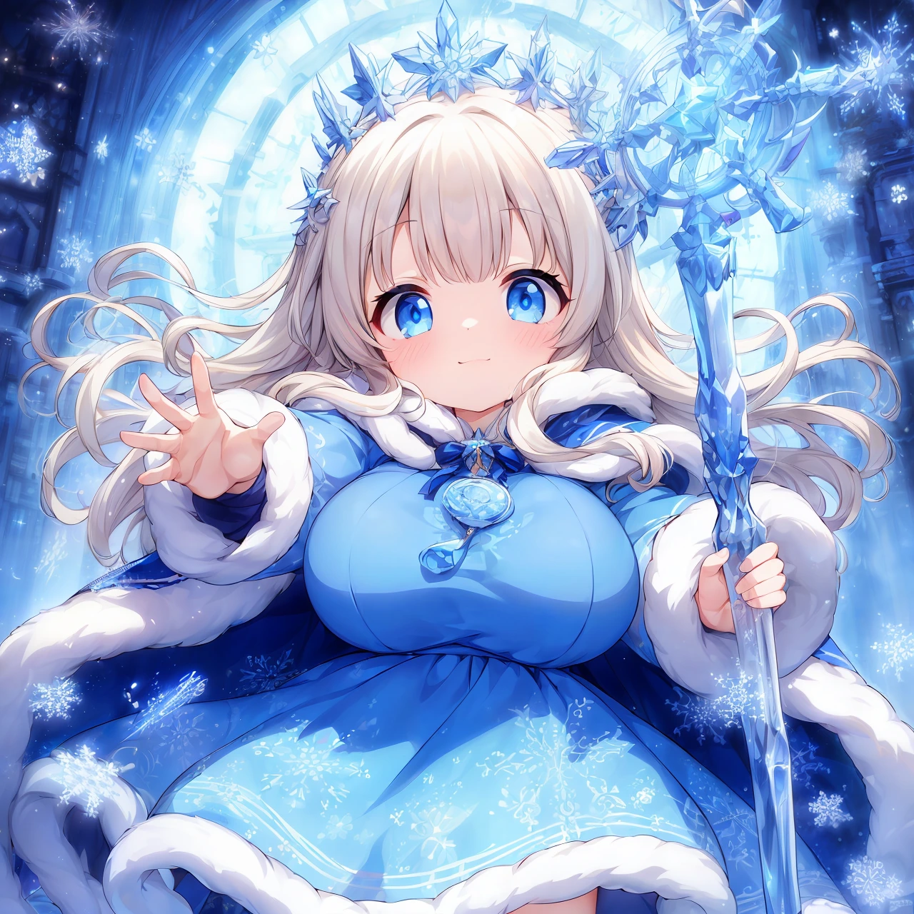 Template: (incredibly absurdres,absolutely resolution,highres:1.2),1girl,blue eyes,ice,cinematic lighting,masterpiece,best quality,ultra-detailed,<lora:flat2:-1>,<lora:flatBG:-1>, <lora:hyperdetailer_v095:0.1>,