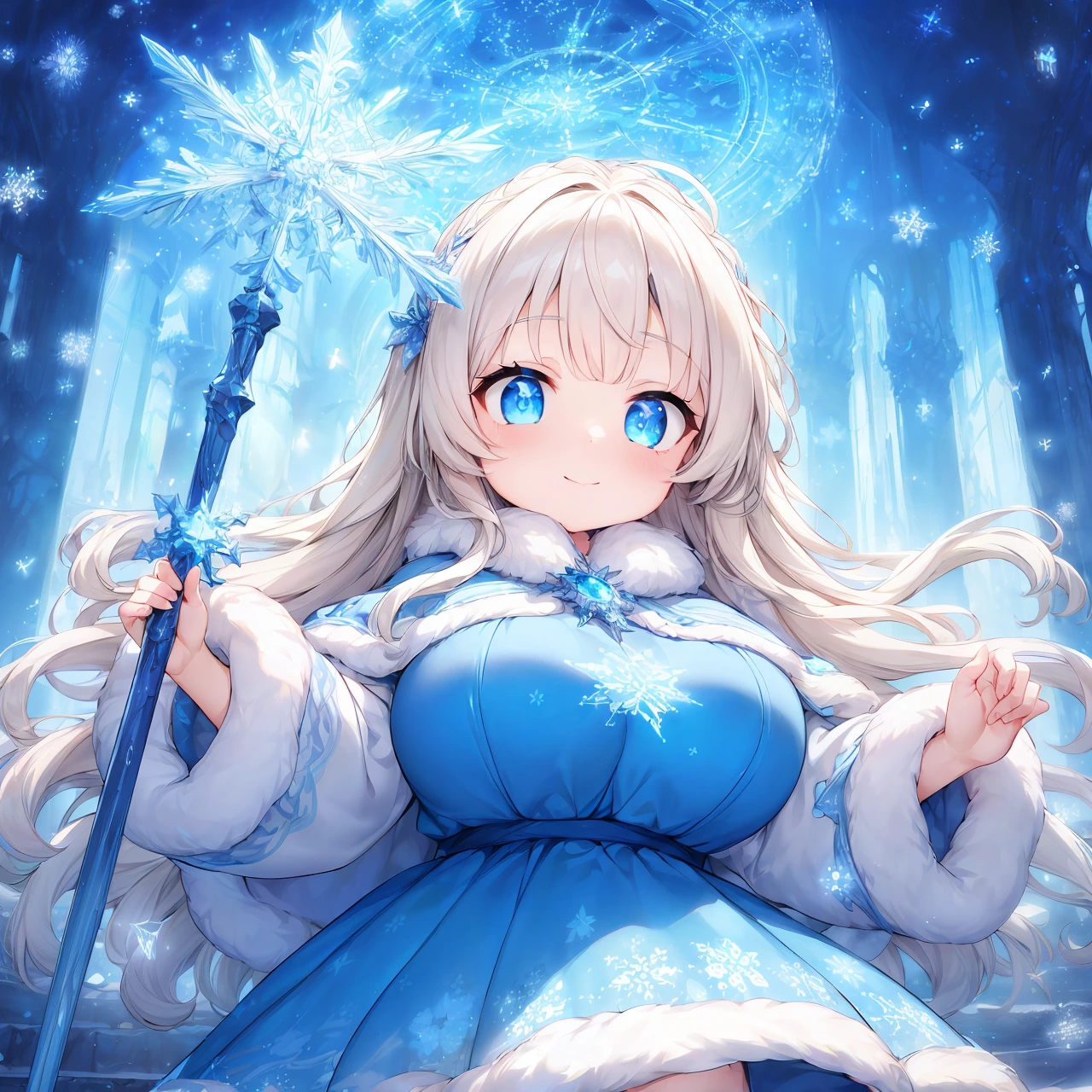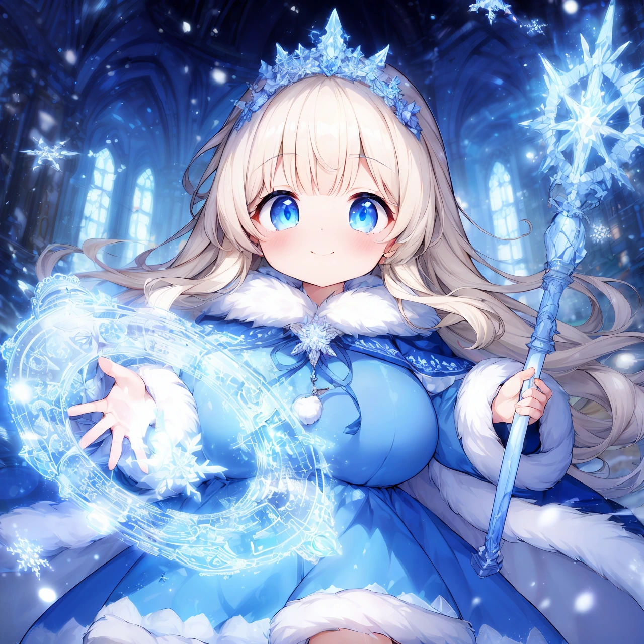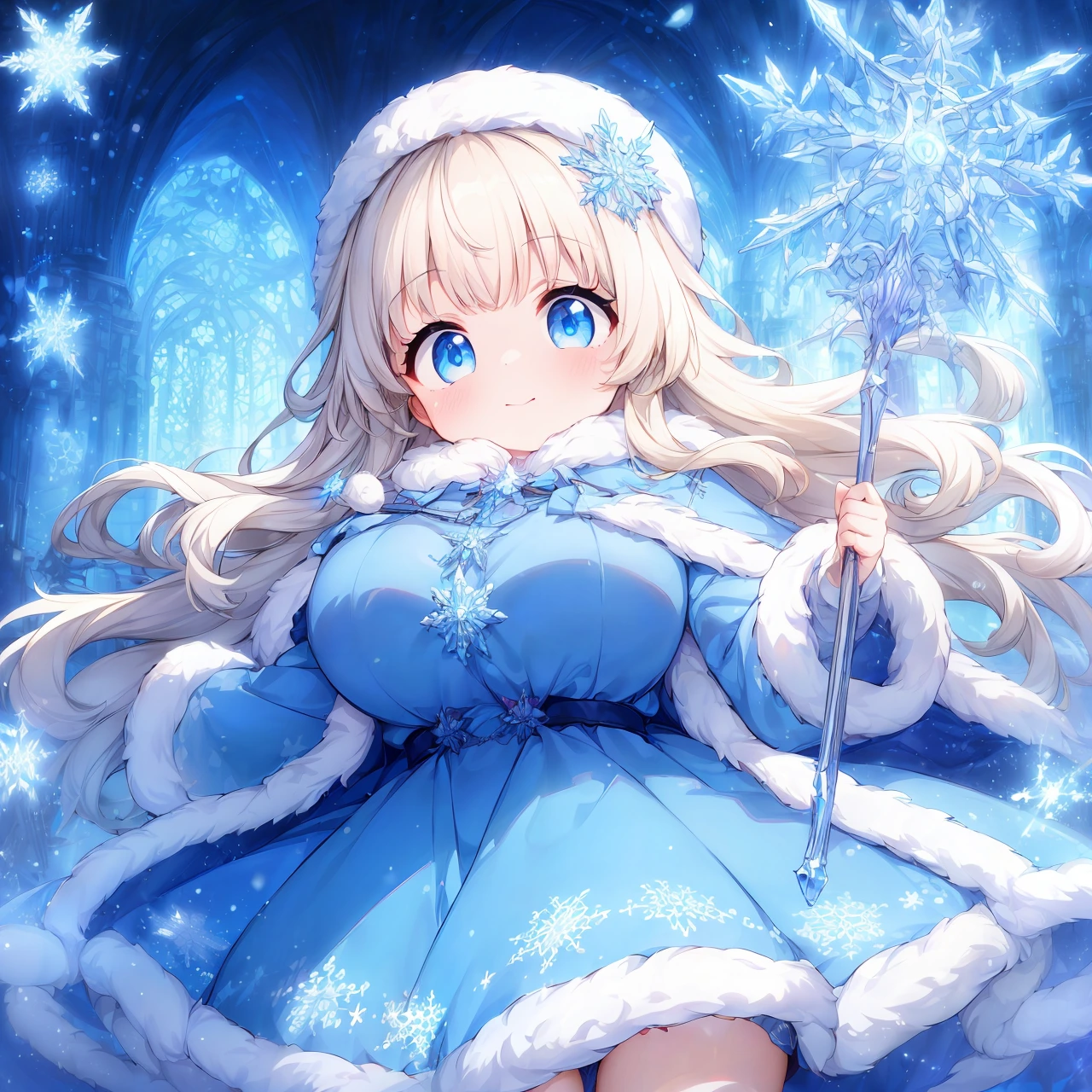 Template: (incredibly absurdres,absolutely resolution,highres:1.2),1girl,blue eyes,ice,cinematic lighting,masterpiece,best quality,ultra-detailed,<lora:flat2:-1>,<lora:flatBG:-1>, <lora:hyperdetailer_v095:0.1>,