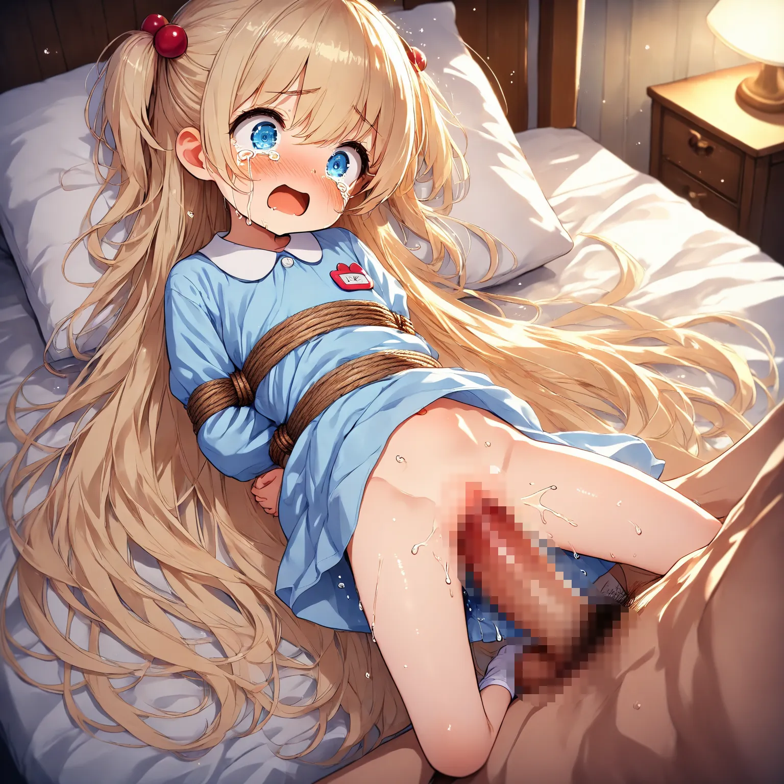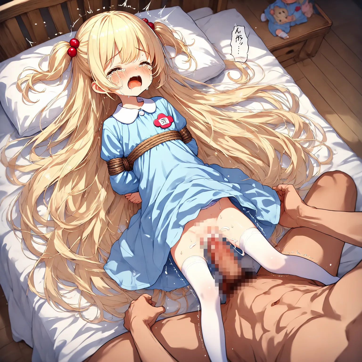 Restraint rape of a blonde girl in a smock