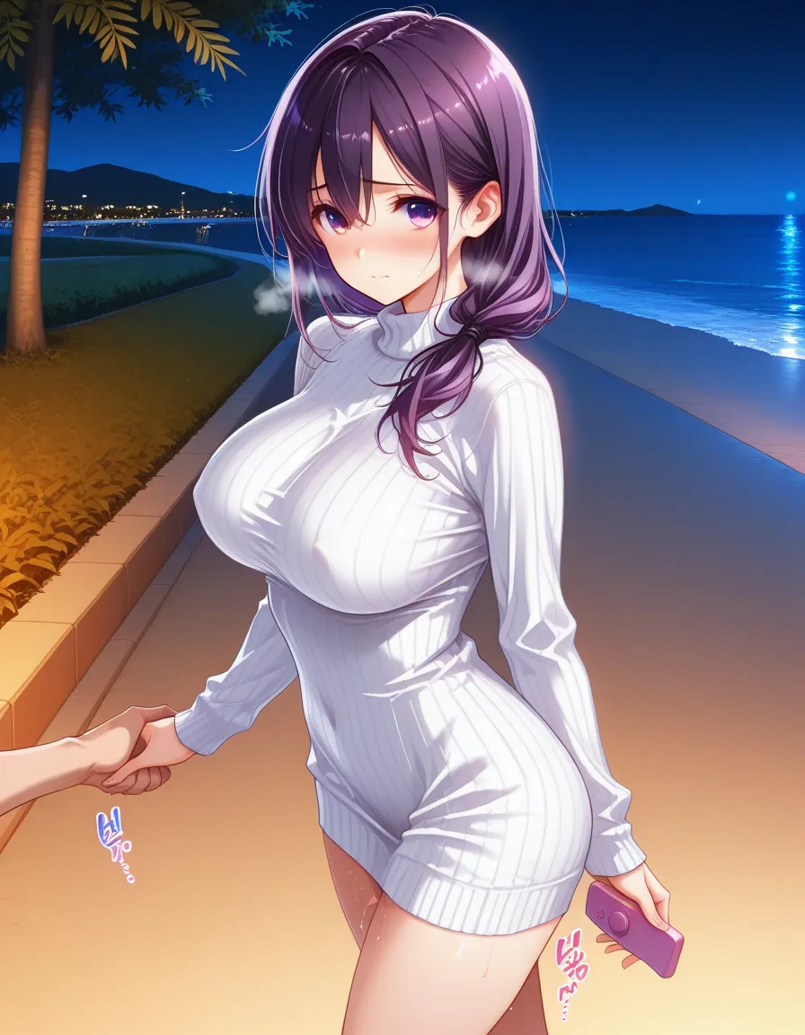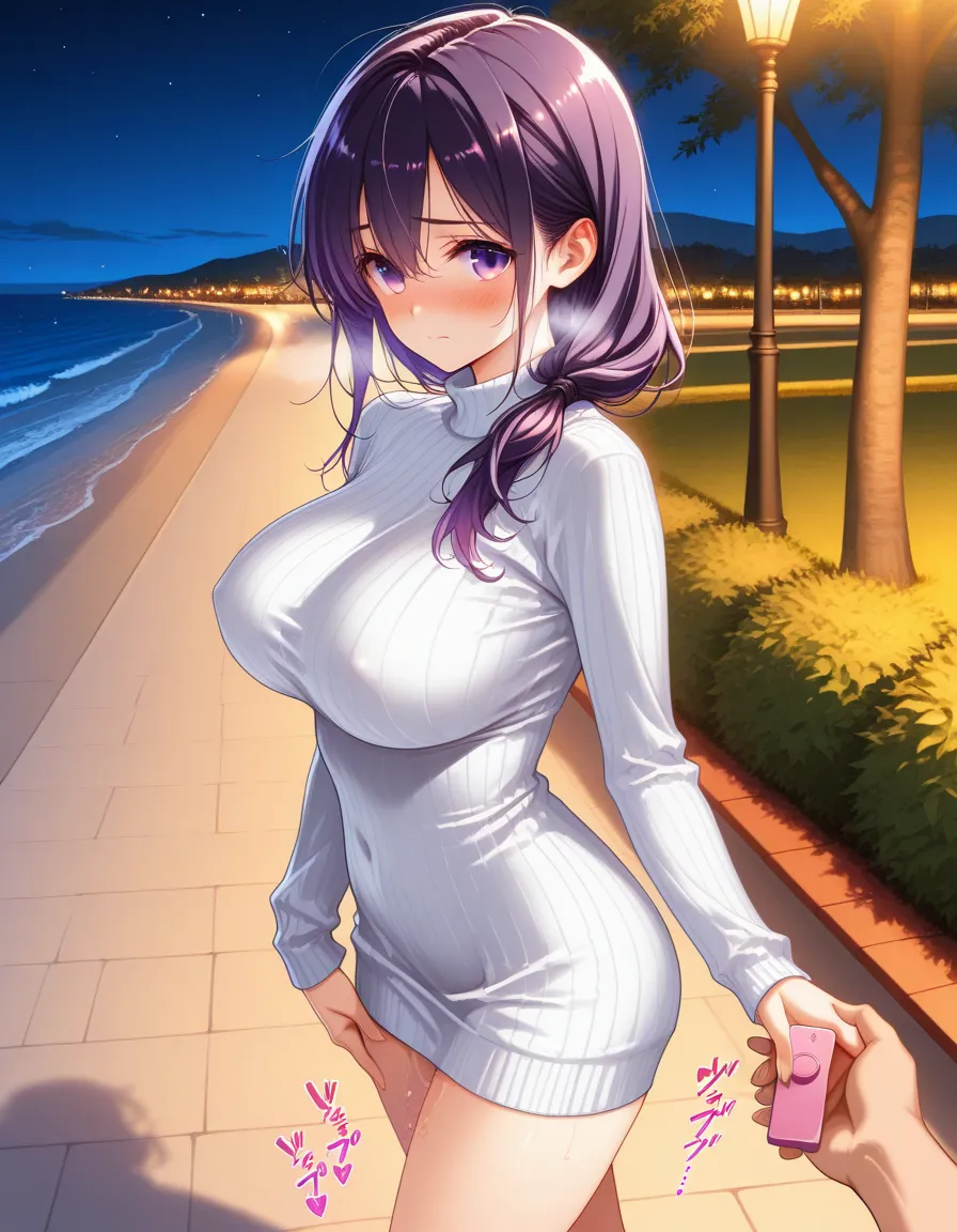 紫髪ちゃんと夜の海浜公園デート