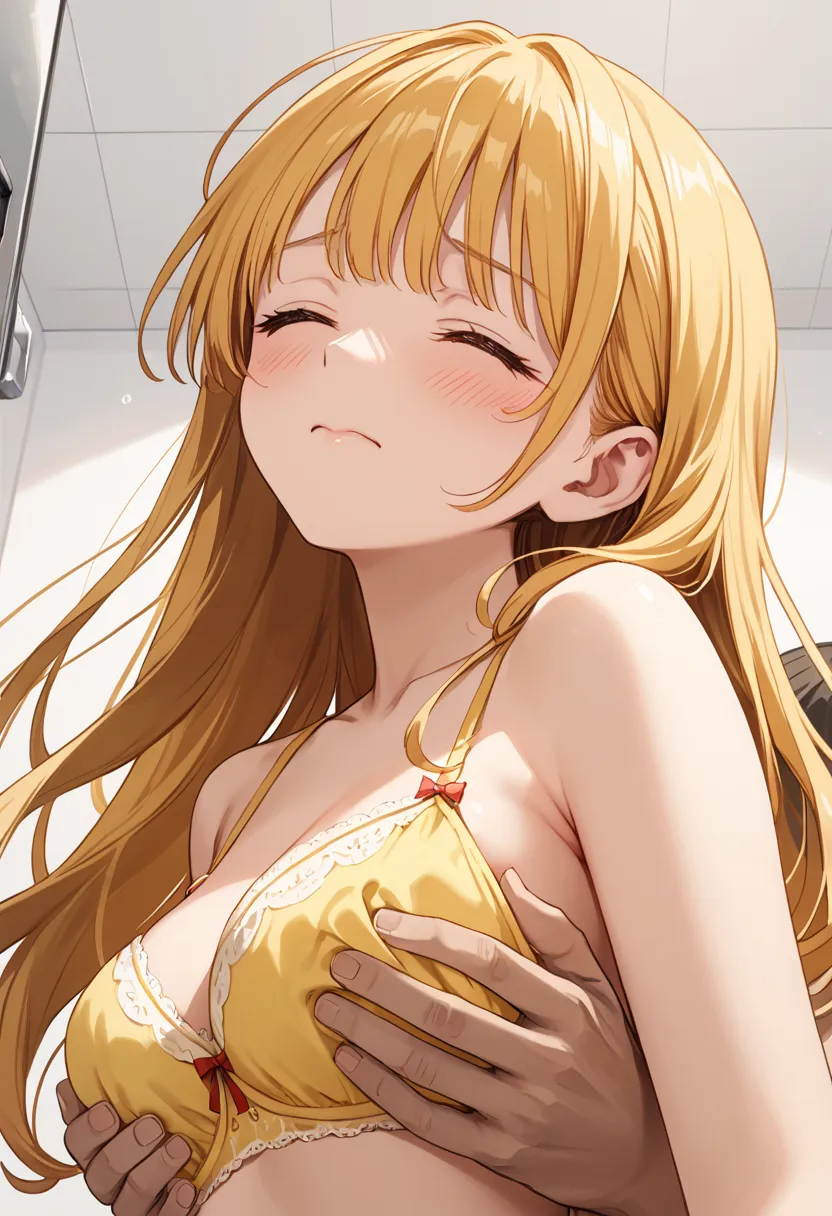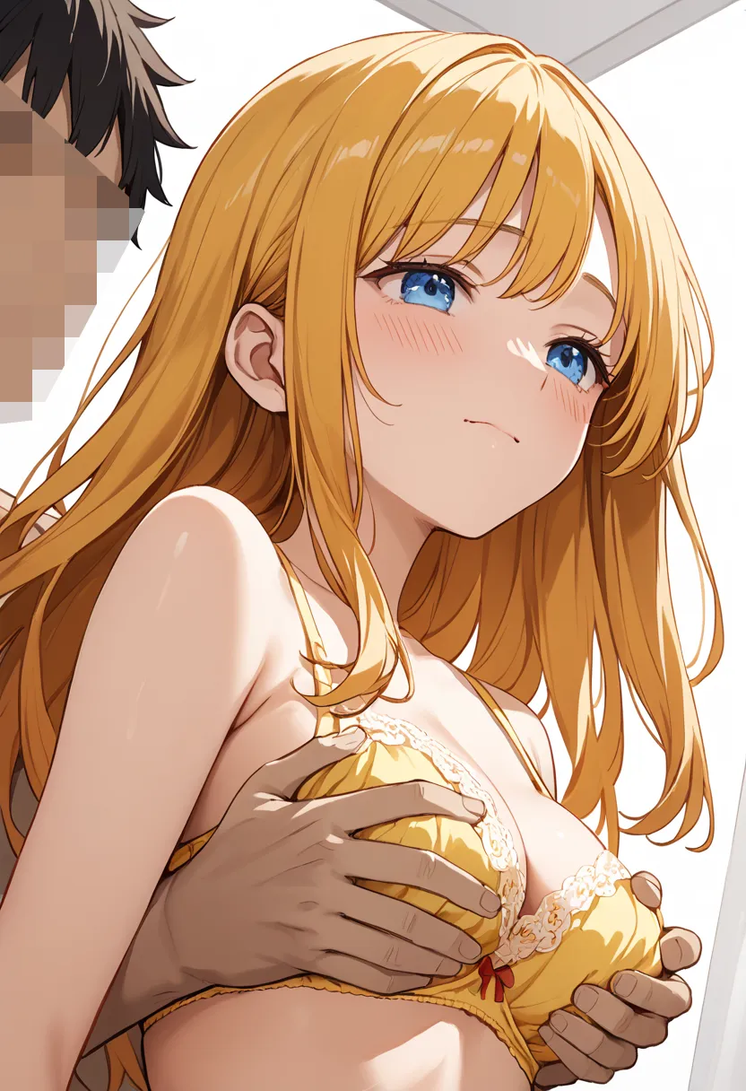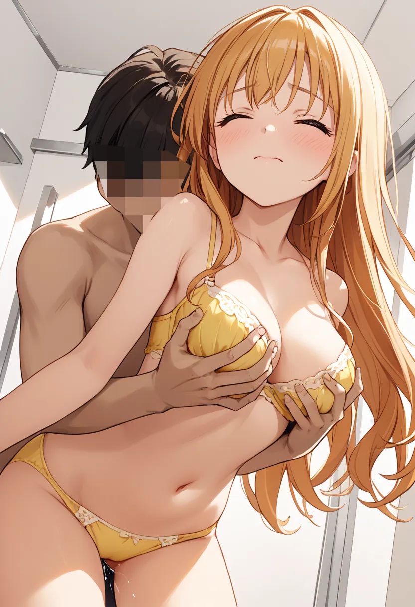 いつもの彼女に似合う黄色のブラもいくつか試着して、後ろから揉みしだく。