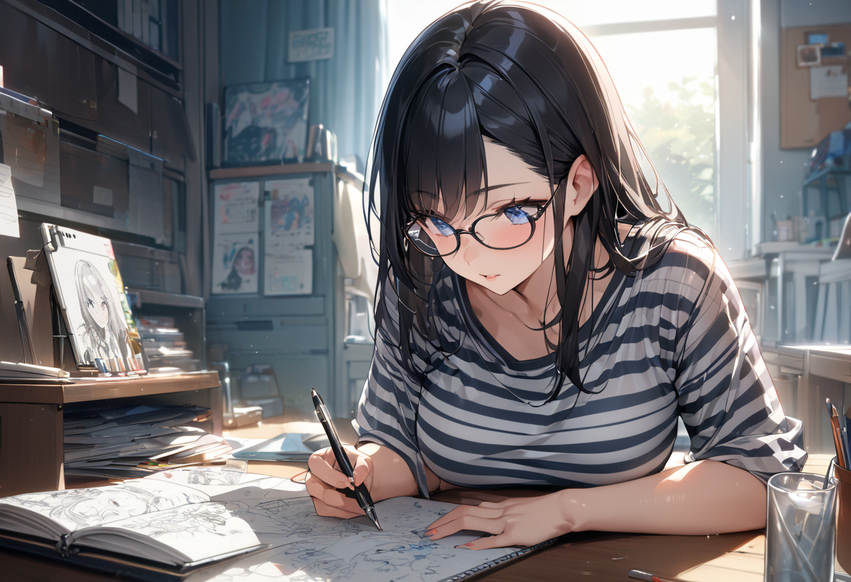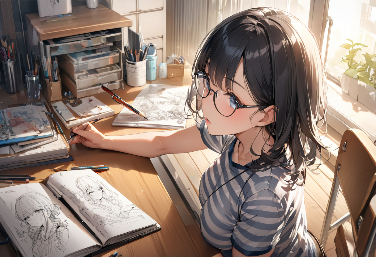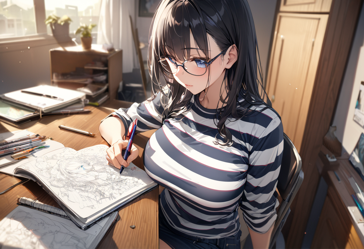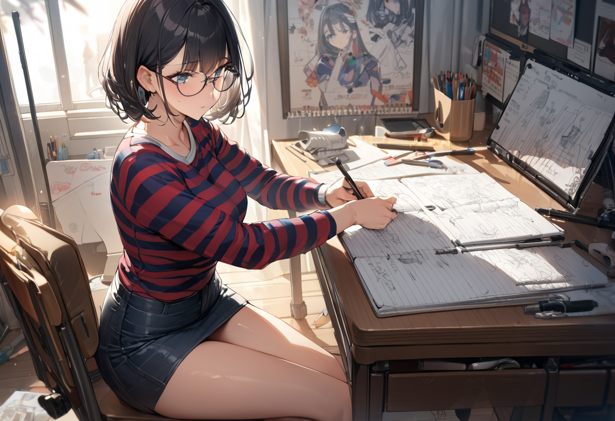 うをををををっっ。何もかもが凄すぎるっっ。 ちゃんとノートに絵が描かれてるのもいいし、机の上や壁がごちゃごちゃしてるのもいいし。あと揉みたい(ォィ(笑)
