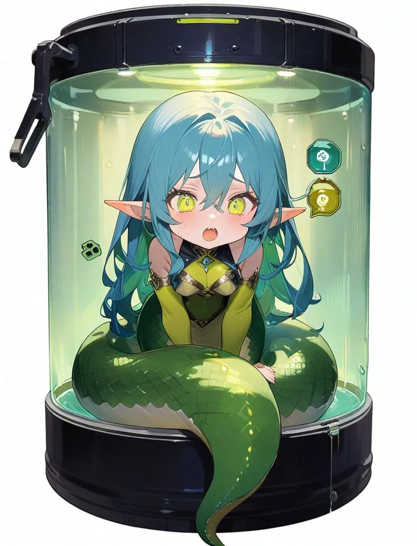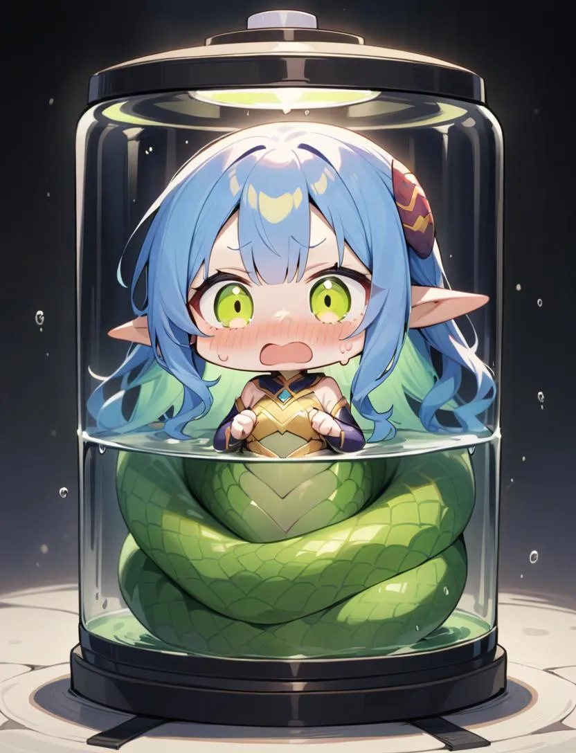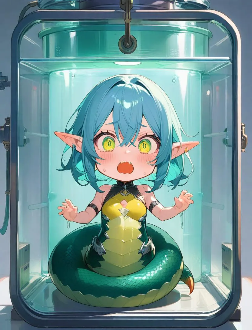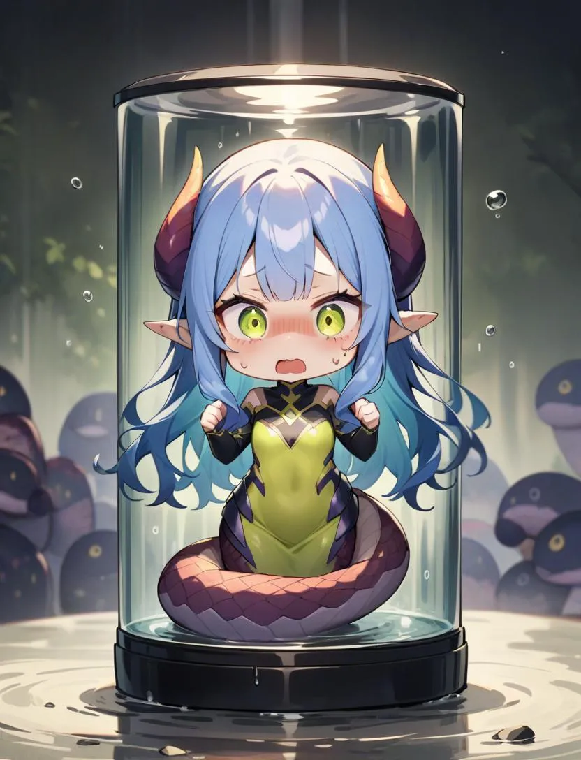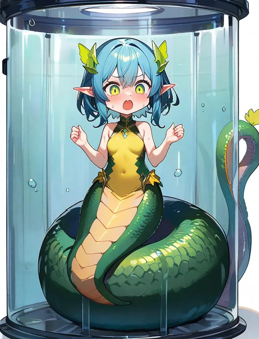 実験室の奥に下半身がヘビの子達がいました。凶暴さも、毒も持っていないらしくとても臆病な子達なので安心とのことです。ちなみにこのコ達はスライムの培養液の中にいた小さな子達からの進化らしいのでとても可愛いくなりそうです。ここの実験室いた子とまだ外にもいる人魚たちもまとめてうちに引き取るのことにしました。