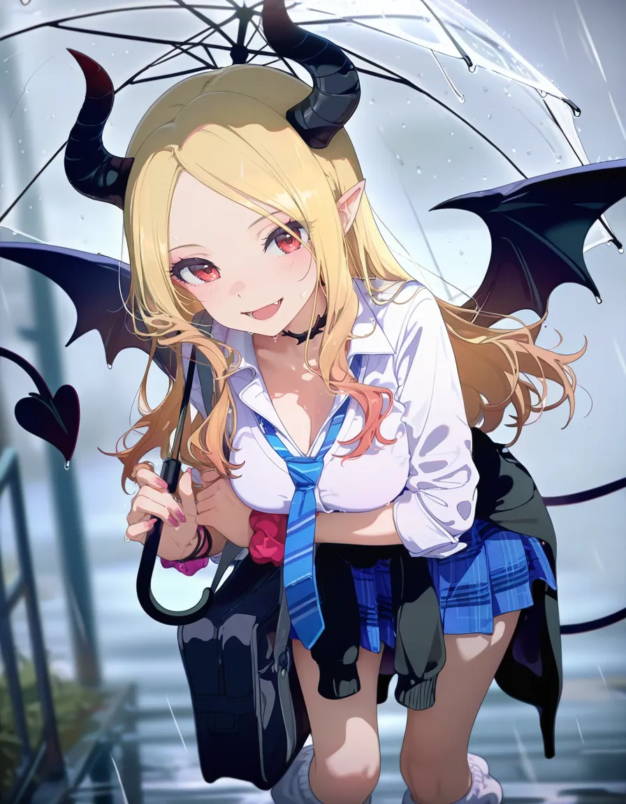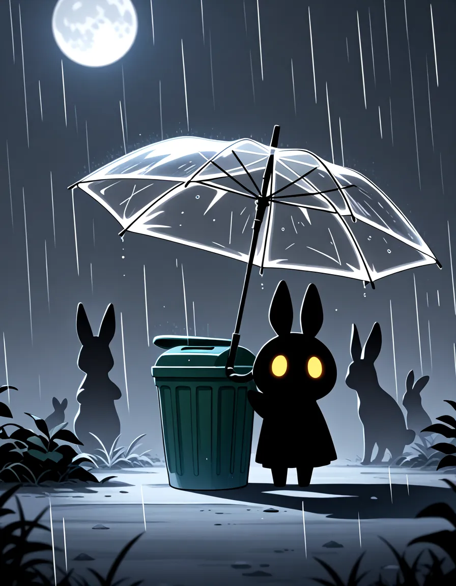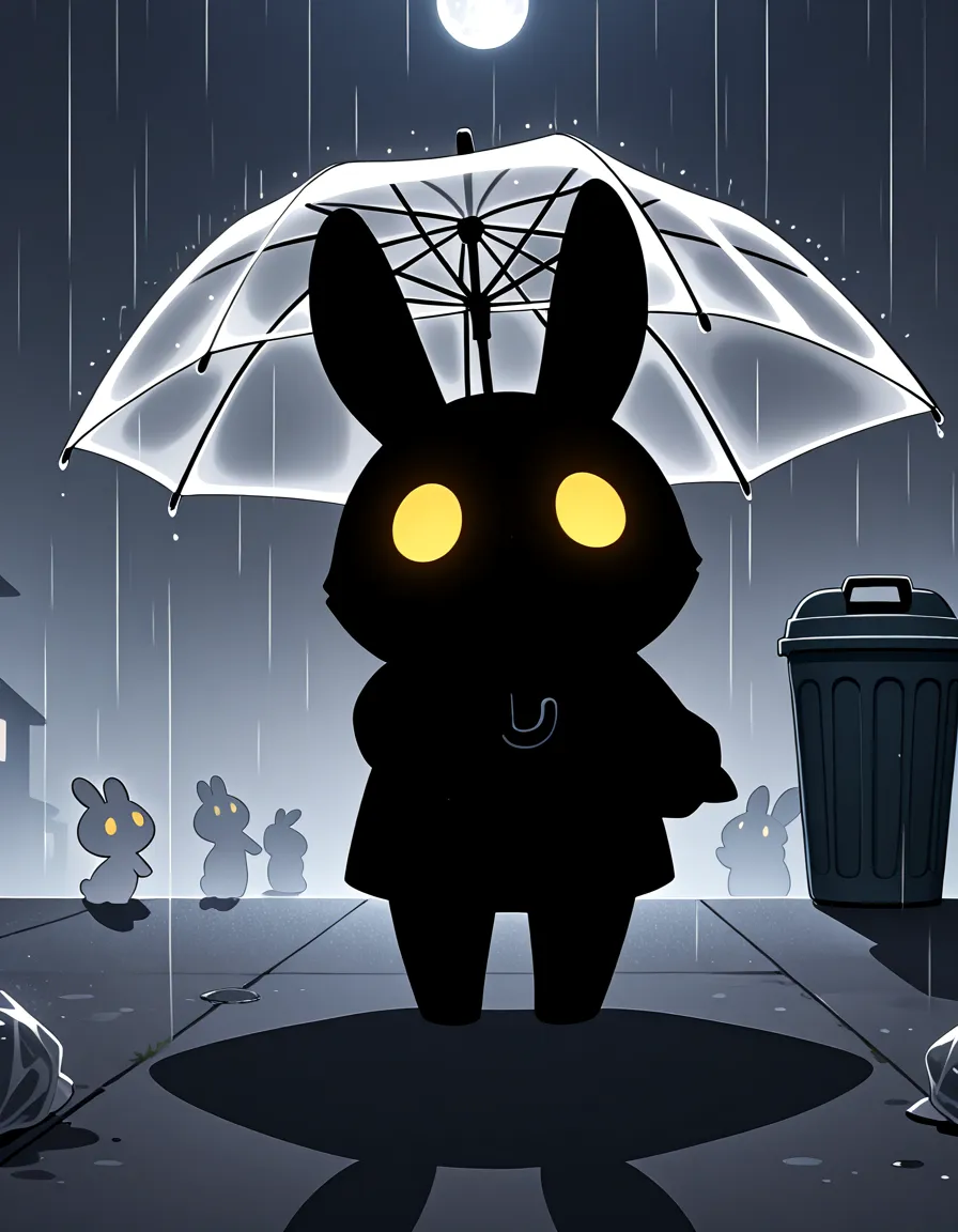 ビニール傘がLoRA無しで出るかの実験で学生の下校のイメージで私が試しにビニール傘を持ちました♪ でも、面白みが足りないとヘタちゃんの出番になったみたいです~💦