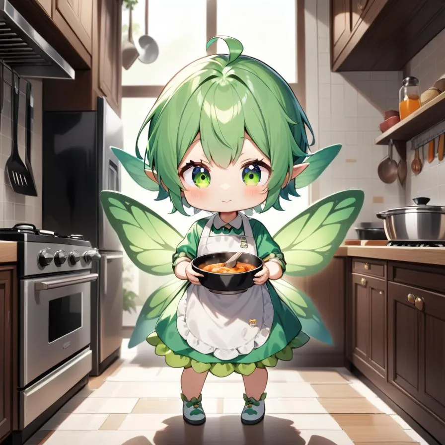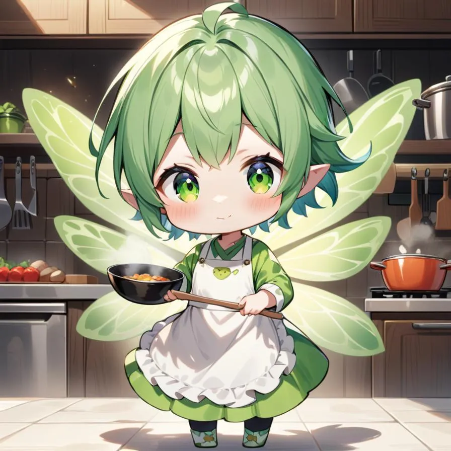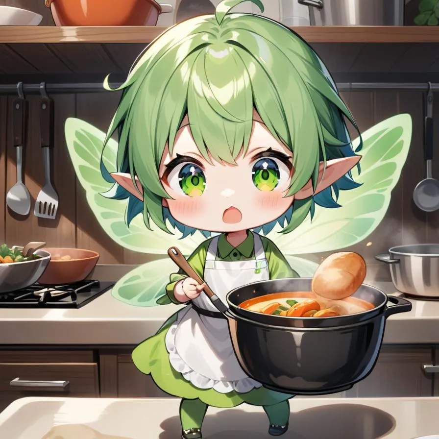 妖精の子たちはとても働き者でキッチンで料理を作り出しました。