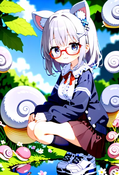 parameters: ((detailed eyes)),solo, 1girl, high school girl, large breasts, (silver hair, medium hair, grey eyes ),((silver bear_ears)), red-framed eyewear, glasses, :3, hair accessory, yukata, floral print, geta, holding drawstring bag, fair, (( goldfish scooping, holding poi, poi)), squatting, looking at another, from side, very aesthetic, absurdres, ultra detailed,, ((detailed eyes)),(ai-generated),(lens flare),(vibrant colors),(photorealistic),(perfect eyes),(high saturation),(high contrast),(sharpness),(soft outline),(realistic textures),(bold colors),(dynamic angle),(depth of field),(beautiful eyes, detailed eyes:1.2),(4k,8k,Ultra HD),(Masterpiece:1.2),(Best quality:1.2),(Detailed:1.5),(Detailed background:1.5),, <lora:hyperdetailer_v060.safetensors:1>