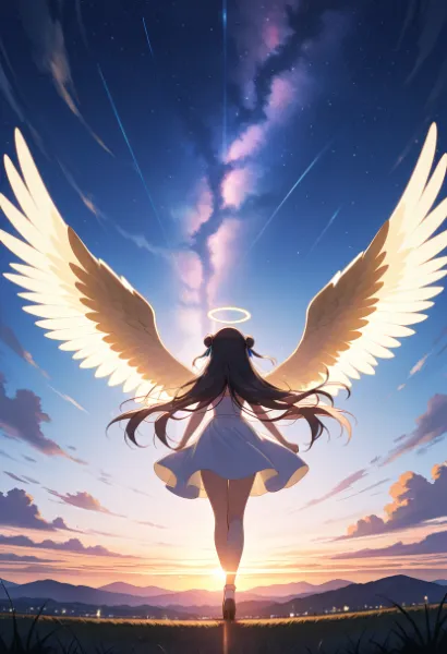 (masterpiece, best quality:1.3), illustration, (extream detailed), one girl, angel Descending