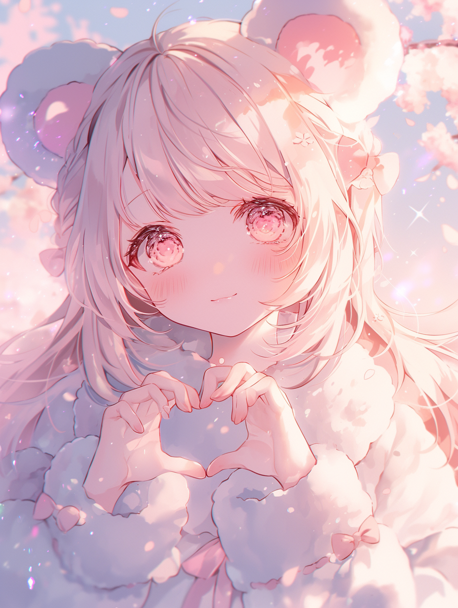 草原の中でハートを作るくま娘💕