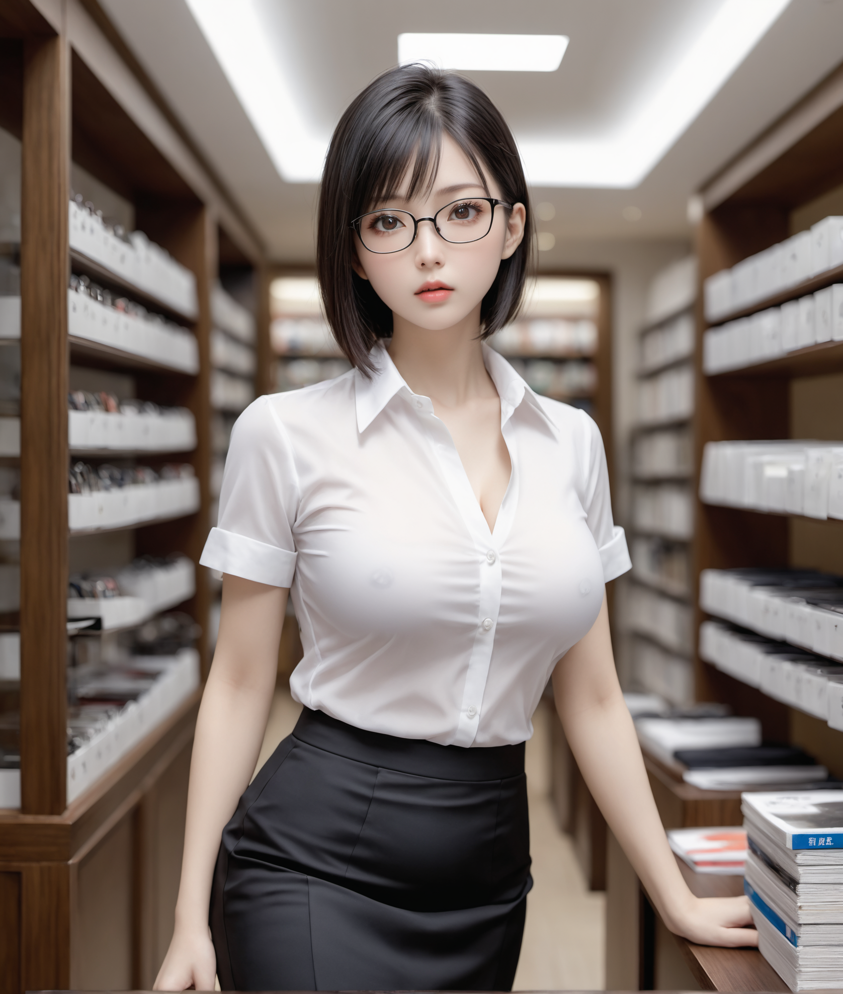 [{"keyword":"parameters","text":"(masterpiece:1.3), (highly detailed:1.3), (highres:1.1), best quality, Ultra-detail, (masterpiece, best quality), (absurdres:1.2),portrait,(Good coloring:1.4)nBREAKn(8k, RAW photo, best quality, ultra high res, photorealistic, masterpiece, ultra-detailed, Unreal Engine),Delicate depiction,detailed painting,(Glasses shopn:1.5)nBREAK,n1Woman, solo,(Beautiful Japanese Woman:1.5),(tifa:0.7),white skin,brown eyes,(small eyes:1.1)nBREAKn(black hair:1.1),(short hair:1.3),(straight heir:1.2), flowing hair,flat chest,23-years-old,(large breasts:1.3),(Perfect eye:1.5),Boston frame glassesnBREAKn1female, (white short sleeves business shirt :1.5),(black stockings:1.1), (black pencil skirt:1.5),(Pink sexy panties in skirt:0.8),(Wrinkled Panties:0.9),(Cotton panties:0.9),(Pink sexy bra in shirt:0.8),no tie,nBREAKn1female is choosing glasses at an optician's shopnBREAKndynamic angle,soft focus,hi res, <lora:Katsura Masakazu_XL_V2:0.1>nNegative prompt: nude, negativeXL_D, (extra finger:1.4), (fewer finger:1.4), (bad fingers:1.4), (bad face), (bad anatomy:1.4), bad legs, extra legs, NEGATIVE_HANDS,text,tie,smilenSteps: 20, Sampler: DPM++ 2M, Schedule type: Karras, CFG scale: 7, Seed: 1600716920, Size: 850x1000, Model hash: 7b230307f3, Model: 0.7(SDXL_Anreal_flowermixmoonxl_v3) + 0.3(SDXL_real_anim4gineAura_rr168Ez2tm), Denoising strength: 0.5, ControlNet 0: "Module: InsightFace+CLIP-H (IPAdapter), Model: ip-adapter_xl [4209e9f7], Weight: 1, Resize Mode: Crop and Resize, Processor Res: 0.5, Threshold A: 0.5, Threshold B: 0.5, Guidance Start: 0.0, Guidance End: 1.0, Pixel Perfect: False, Control Mode: Balanced, Hr Option: Both", ControlNet 1: "Module: reference_only, Model: None, Weight: 2, Resize Mode: Crop and Resize, Processor Res: 0.5, Threshold A: 0.5, Threshold B: 0.5, Guidance Start: 0.0, Guidance End: 1.0, Pixel Perfect: False, Control Mode: Balanced, Hr Option: Both", Hires Module 1: Use same choices, Hires CFG Scale: 5, Hires upscale: 2, Hires upscaler: R-ESRGAN 4x+, Lora hashes: "Katsura Masakazu_XL_V2: 16f28480b261", TI: "negativeXL_D, NEGATIVE_HANDS, negativeXL_D, NEGATIVE_HANDS", Version: f2.0.1v1.10.1-previous-664-gd557aef9, Module 1: fenrisxlVAE_v10"}]