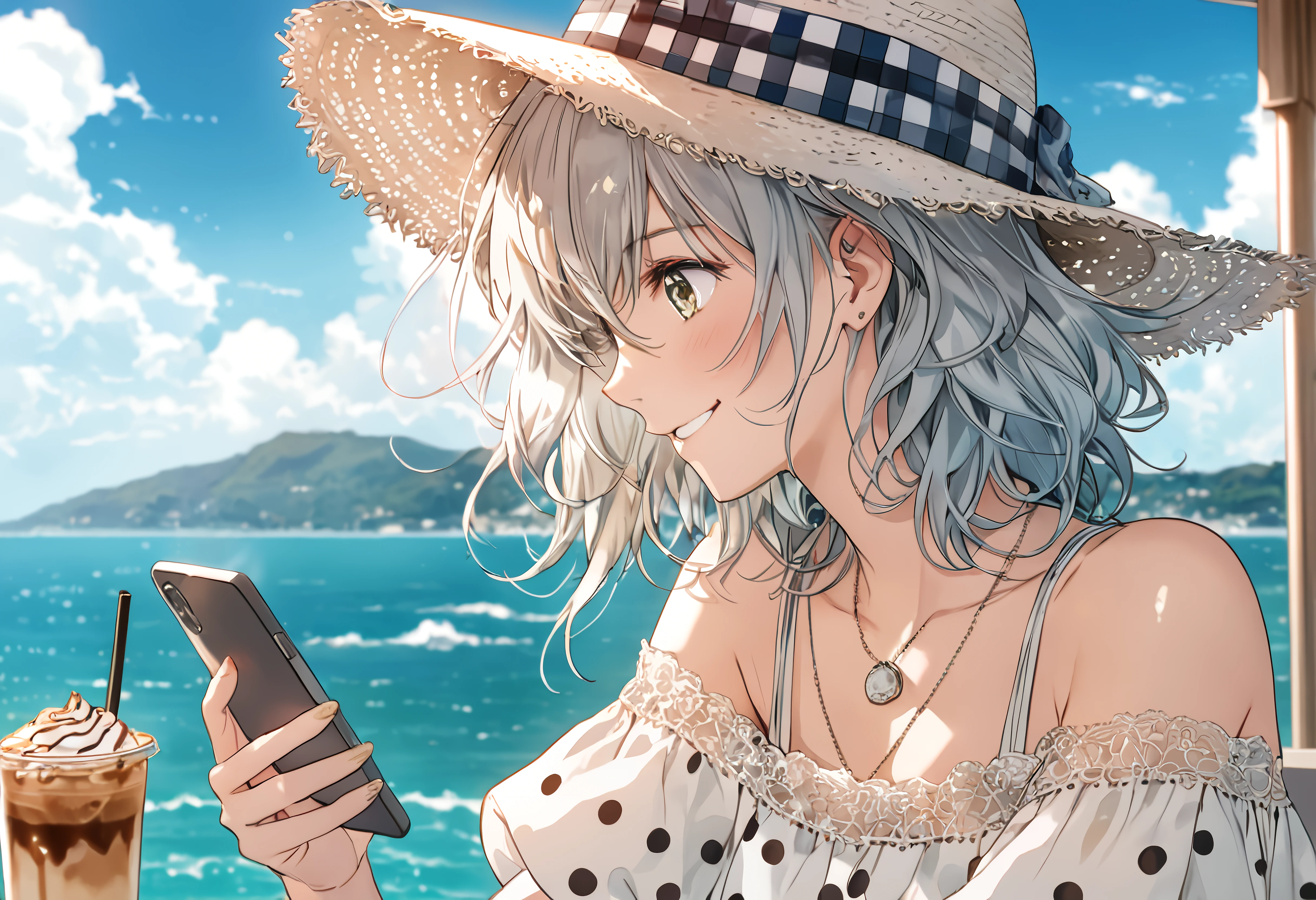 水玉、がプロンプトにあるせいで、アイスラテがタピオカ入りみたいになっている気がするw