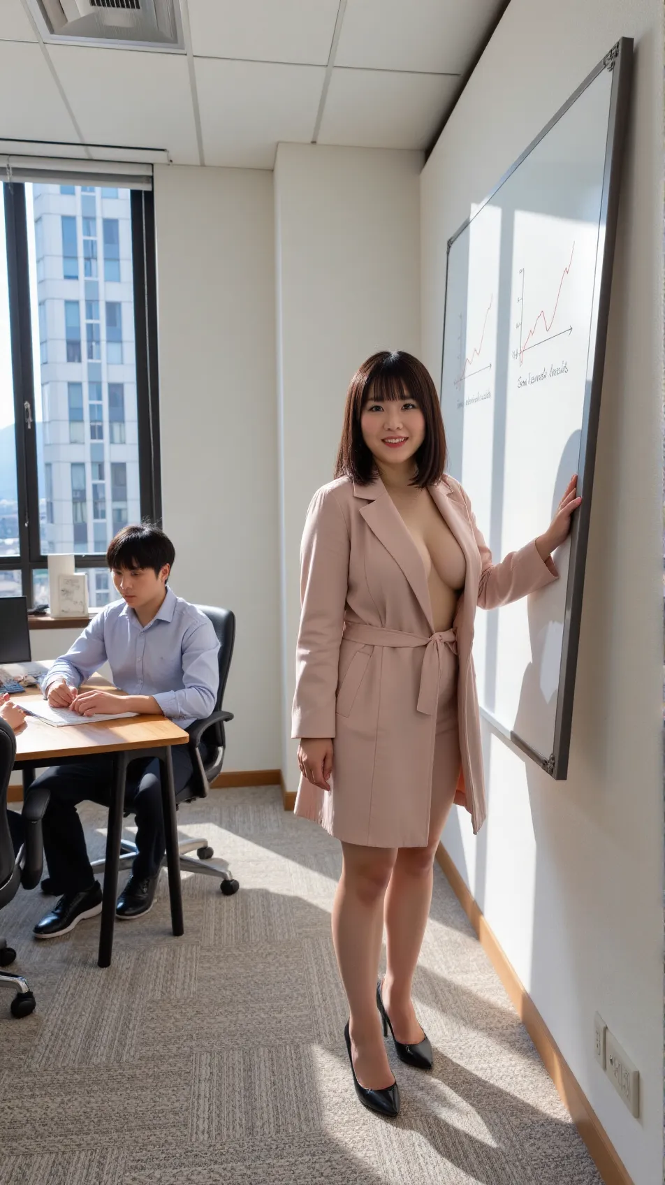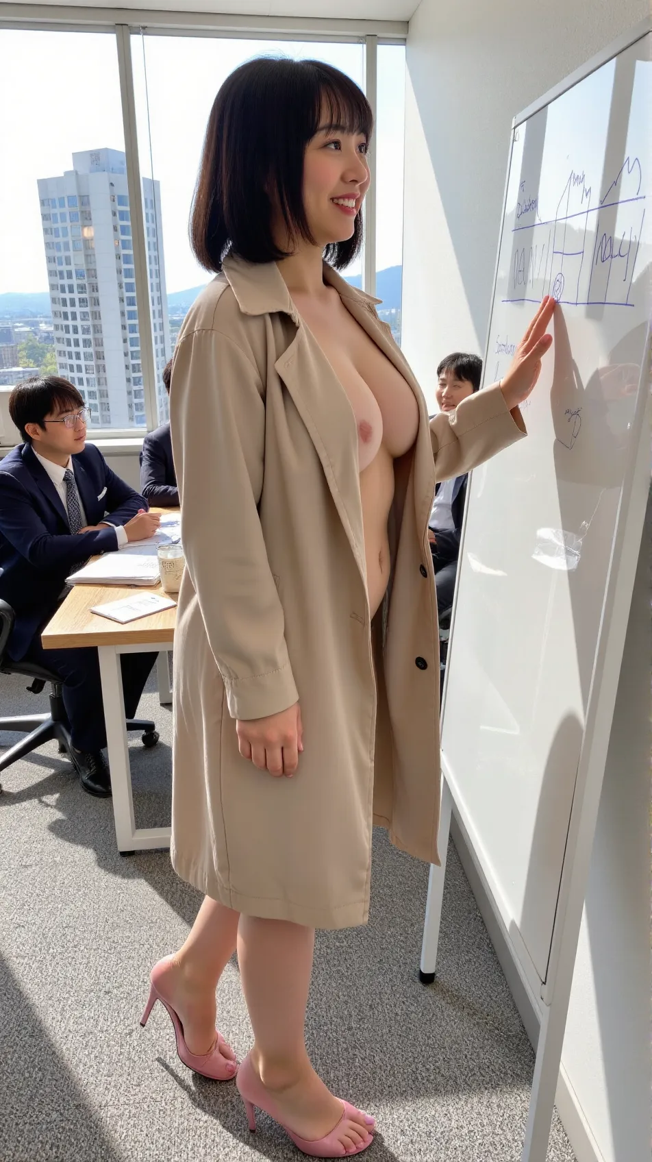 週末のロケの打合せ。男性の同僚は何か気づくかな、ドキドキ。彼らなら大丈夫かな?w