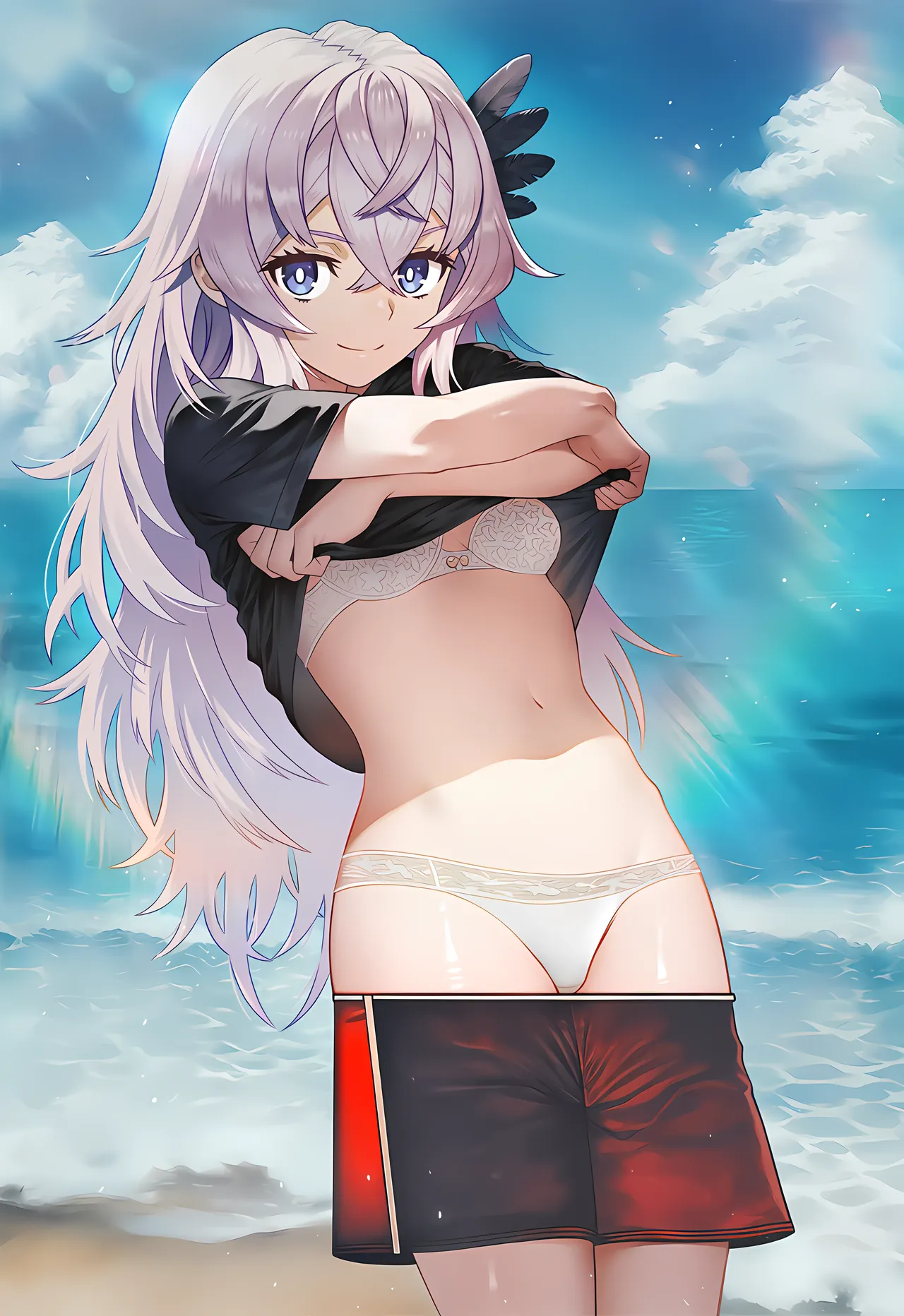 Description: 10::amazing quality::,10::very aesthetic::,year 2024,1girls,solo,toaru kagaku no railgun,fate/grand order,cute,animation,outdoors,arknights,serious ocean,beaches,summer,particle lighting,sunny,(cool),dark art,5::cool art::,ray tracing,beautiful detailed eyes,3::beautiful::,8K,Beautiful backgrounds ,5::backgrounds dataset::