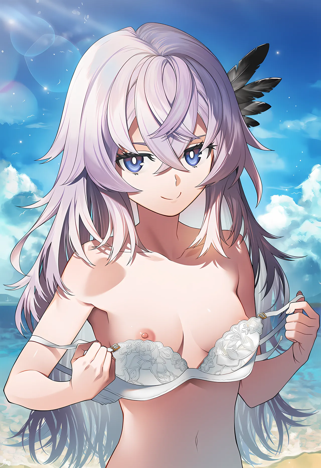 Comment: {"prompt": "10::amazing quality::,10::very aesthetic::,year 2024,1girls,solo,toaru kagaku no railgun,fate/grand order,cute,animation,outdoors,arknights,serious ocean,beaches,summer,particle lighting,sunny,(cool),dark art,5::cool art::,ray tracing,beautiful detailed eyes,3::beautiful::,8K,Beautiful backgrounds ,5::backgrounds dataset::\n", "steps": 28, "height": 1216, "width": 832, "scale": 7.0, "uncond_scale": 0.0, "cfg_rescale": 0.6, "seed": 4005710817, "n_samples": 1, "noise_schedule": "karras", "legacy_v3_extend": false, "reference_information_extracted_multiple": [], "reference_strength_multiple": [], "extra_passthrough_testing": {"prompt": null, "uc": null, "hide_debug_overlay": false, "r": 0.0, "eta": 1.0, "negative_momentum": 0.0}, "v4_prompt": {"caption": {"base_caption": "10::amazing quality::,10::very aesthetic::,year 2024,1girls,solo,toaru kagaku no railgun,fate/grand order,cute,animation,outdoors,arknights,serious ocean,beaches,summer,particle lighting,sunny,(cool),dark art,5::cool art::,ray tracing,beautiful detailed eyes,3::beautiful::,8K,Beautiful backgrounds ,5::backgrounds dataset::\n", "char_captions": [{"char_caption": "saika magoichi (fate),fate/grand order,happy,closed mouth,black plain t-shirt,5::red shorts::,goodbye hands,cute pose,spoken heart,looking at viewer,nsfw,", "centers": [{"x": 0.1, "y": 0.5}]}]}, "use_coords": true, "use_order": true, "legacy_uc": false}, "v4_negative_prompt": {"caption": {"base_caption": "nsfw, lowres, artistic error, film grain, scan artifacts, worst quality, bad quality, jpeg artifacts, very displeasing, chromatic aberration, dithering, halftone, screentone, multiple views, logo, too many watermarks, negative space, blank page, 3d,2koma,4koma,10::one arms::,ai-generated,15::text::,longbody,legwear,cervix,lowres,bad anatomy,bad hands,missing fingers,digit,fewer digits,worst quality,low quality,blush,six fingers,bad hand,bad legs,missing legs,10::worst quality::,low quality,normal quality,jpeg,", "char_captions": [{"char_caption": "10::one arms::,blurry,lowres,aliasing, jaggy lines,bad hands,bad Fingers,", "centers": [{"x": 0.1, "y": 0.5}]}]}, "use_coords": false, "use_order": false, "legacy_uc": false}, "sampler": "k_euler_ancestral", "controlnet_strength": 1.0, "controlnet_model": null, "dynamic_thresholding": false, "dynamic_thresholding_percentile": 0.999, "dynamic_thresholding_mimic_scale": 10.0, "sm": false, "sm_dyn": false, "skip_cfg_above_sigma": null, "skip_cfg_below_sigma": 0.0, "lora_unet_weights": null, "lora_clip_weights": null, "deliberate_euler_ancestral_bug": false, "prefer_brownian": true, "cfg_sched_eligibility": "enable_for_post_summer_samplers", "explike_fine_detail": false, "minimize_sigma_inf": false, "uncond_per_vibe": true, "wonky_vibe_correlation": true, "stream": "msgpack", "add_original_image": false, "img2img": {"strength": 0.8, "begin_from_sigma": null, "noise": 0.0, "extra_noise_seed": null, "color_correct": true}, "version": 1, "uc": "nsfw, lowres, artistic error, film grain, scan artifacts, worst quality, bad quality, jpeg artifacts, very displeasing, chromatic aberration, dithering, halftone, screentone, multiple views, logo, too many watermarks, negative space, blank page, 3d,2koma,4koma,10::one arms::,ai-generated,15::text::,longbody,legwear,cervix,lowres,bad anatomy,bad hands,missing fingers,digit,fewer digits,worst quality,low quality,blush,six fingers,bad hand,bad legs,missing legs,10::worst quality::,low quality,normal quality,jpeg,", "request_type": "NativeInfillingRequest", "signed_hash": "7tT2FkgyazmDBEZ9WjSnWh1nMX+QQ1sZfVh3mJy26+69JBaJM1ivKK5c1zwpA9TTt4bRf7x+9901vyCxtdCyCw=="}