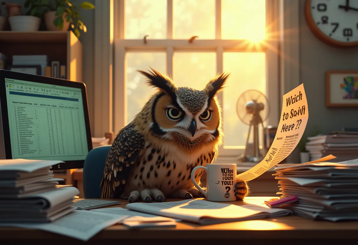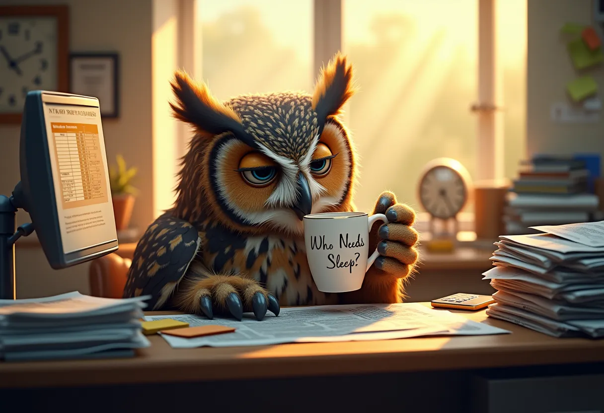 prompt: {"8": {"inputs": {"samples": ["31", 0], "vae": ["39", 0]}, "class_type": "VAEDecode", "_meta": {"title": "VAE\u30c7\u30b3\u30fc\u30c9"}}, "9": {"inputs": {"filename_prefix": "[flux1-dev.safetensors]-20250802205754_707580789989005", "images": ["8", 0]}, "class_type": "SaveImage", "_meta": {"title": "\u753b\u50cf\u3092\u4fdd\u5b58"}}, "27": {"inputs": {"width": ["59", 0], "height": ["60", 0], "batch_size": 1}, "class_type": "EmptySD3LatentImage", "_meta": {"title": "\u7a7a\u306eSD3\u6f5c\u5728\u753b\u50cf"}}, "31": {"inputs": {"seed": 707580789989005, "steps": 20, "cfg": 1.0, "sampler_name": "euler", "scheduler": "simple", "denoise": 1.0, "model": ["38", 0], "positive": ["41", 0], "negative": ["42", 0], "latent_image": ["27", 0]}, "class_type": "KSampler", "_meta": {"title": "K\u30b5\u30f3\u30d7\u30e9\u30fc"}}, "38": {"inputs": {"unet_name": "flux1-dev.safetensors", "weight_dtype": "default"}, "class_type": "UNETLoader", "_meta": {"title": "Load Diffusion Model"}}, "39": {"inputs": {"vae_name": "flux\\ae.sft"}, "class_type": "VAELoader", "_meta": {"title": "VAE\u3092\u8aad\u307f\u8fbc\u3080"}}, "40": {"inputs": {"clip_name1": "clip_l.safetensors", "clip_name2": "t5xxl_fp16.safetensors", "type": "flux", "device": "default"}, "class_type": "DualCLIPLoader", "_meta": {"title": "\u30c7\u30e5\u30a2\u30ebCLIP\u3092\u8aad\u307f\u8fbc\u3080"}}, "41": {"inputs": {"clip_l": ["52", 0], "t5xxl": ["53", 0], "guidance": 3.5, "clip": ["40", 0]}, "class_type": "CLIPTextEncodeFlux", "_meta": {"title": "CLIP\u30c6\u30ad\u30b9\u30c8\u30a8\u30f3\u30b3\u30fc\u30c9\u30d5\u30e9\u30c3\u30af\u30b9"}}, "42": {"inputs": {"conditioning": ["41", 0]}, "class_type": "ConditioningZeroOut", "_meta": {"title": "\u6761\u4ef6\u4ed8\u3051\u30bc\u30ed\u30a2\u30a6\u30c8"}}, "49": {"inputs": {"text": "1216x832", "delimiter": "x"}, "class_type": "CR Split String", "_meta": {"title": "\ud83d\udd24 CR Split String"}}, "50": {"inputs": {"round_integer": "round", "text": ["49", 0]}, "class_type": "CR String To Number", "_meta": {"title": "\ud83d\udd27 CR String To Number"}}, "51": {"inputs": {"round_integer": "round", "text": ["49", 1]}, "class_type": "CR String To Number", "_meta": {"title": "\ud83d\udd27 CR String To Number"}}, "52": {"inputs": {"value": "Inside a cluttered office, a weary owl with disheveled feathers and half-lidded eyes sits at a messy desk covered in paper stacks, sticky notes, and a glowing computer screen showing spreadsheets. The owl sips coffee from a novelty mug labeled \u201cWho Needs Sleep?\u201d while glancing at a crumpled newspaper headlined \u201cNight Shift Crisis.\u201d Morning sunlight pours through the large east-facing windows behind the owl, casting a golden glow across the desk and creating warm highlights on the owl\u2019s feathers. Dust particles float visibly in the shafts of light. The office is still quiet, early in the day, and the owl looks like it hasn\u2019t slept, yet is beginning to warm up to the new day. A small fan rustles a few loose papers, while a clock shows just after 6:30 AM. The photorealistic scene combines office realism with whimsical humor, capturing the contrast of exhaustion and serene morning light. High detail in materials, subtle facial expression, and lighting interplay."}, "class_type": "PrimitiveStringMultiline", "_meta": {"title": "\u30af\u30aa\u30ea\u30c6\u30a3\u8a2d\u5b9a"}}, "53": {"inputs": {"value": "Inside a cluttered office, a weary owl with disheveled feathers and half-lidded eyes sits at a messy desk covered in paper stacks, sticky notes, and a glowing computer screen showing spreadsheets. The owl sips coffee from a novelty mug labeled \u201cWho Needs Sleep?\u201d while glancing at a crumpled newspaper headlined \u201cNight Shift Crisis.\u201d Morning sunlight pours through the large east-facing windows behind the owl, casting a golden glow across the desk and creating warm highlights on the owl\u2019s feathers. Dust particles float visibly in the shafts of light. The office is still quiet, early in the day, and the owl looks like it hasn\u2019t slept, yet is beginning to warm up to the new day. A small fan rustles a few loose papers, while a clock shows just after 6:30 AM. The photorealistic scene combines office realism with whimsical humor, capturing the contrast of exhaustion and serene morning light. High detail in materials, subtle facial expression, and lighting interplay."}, "class_type": "PrimitiveStringMultiline", "_meta": {"title": "\u5185\u5bb9"}}, "58": {"inputs": {"value": 1.0}, "class_type": "PrimitiveFloat", "_meta": {"title": "\u6d6e\u52d5\u5c0f\u6570\u70b9\u6570"}}, "59": {"inputs": {"expression": "a * b", "a": ["50", 0], "b": ["58", 0]}, "class_type": "MathExpression|pysssss", "_meta": {"title": "multiple width"}, "is_changed": ["a * b"]}, "60": {"inputs": {"expression": "a * b", "a": ["58", 0], "b": ["51", 0]}, "class_type": "MathExpression|pysssss", "_meta": {"title": "multiple height"}, "is_changed": ["a * b"]}}