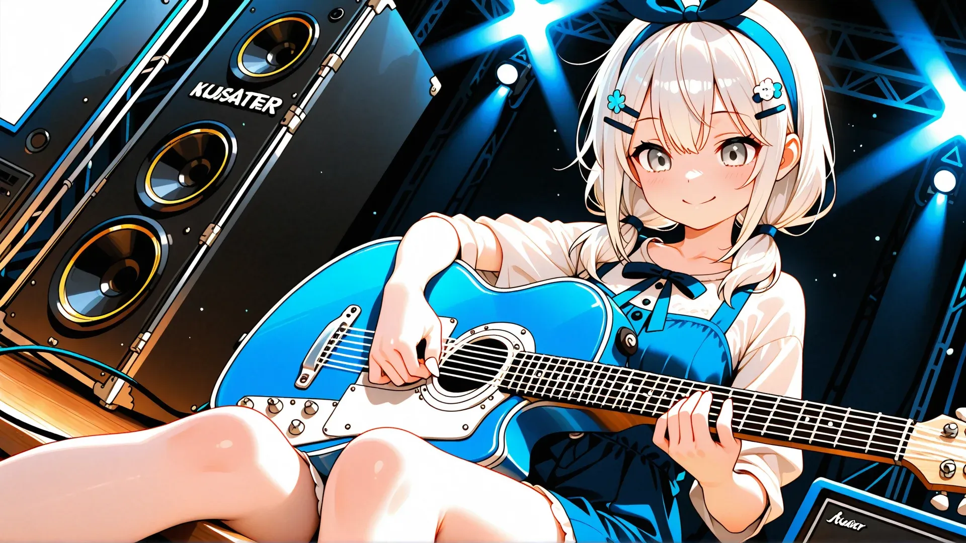 ギター良いね♪ たしか、ギター系は、意外とシンプルなプロンプトだったような? ギターを演奏している=「Playing the guitar」