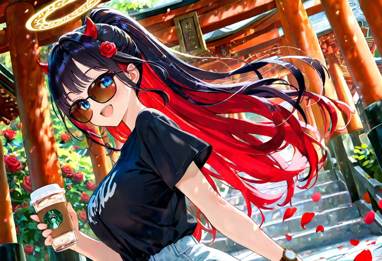 (masterpiece, best quality:1.3), illustration, (extream detailed), one girl, angel Descending
