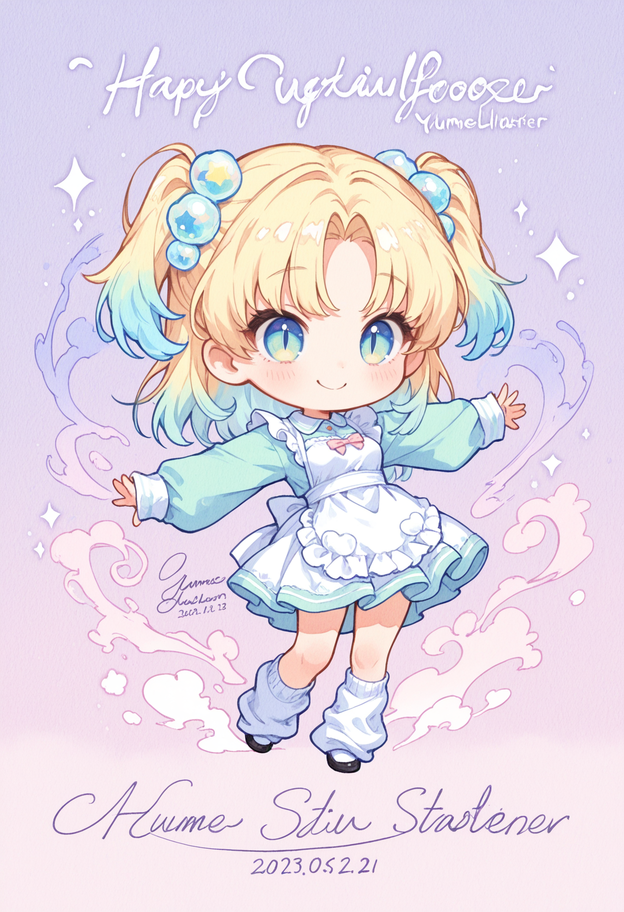 [{"keyword":"parameters","text":"best quality, masterpiece, very aesthetic, general, sfw, watercolor painting, pastel colors, yumekawaii, chibi, 1girl, solo, cute, kawaii, loli, petite stature, medium breasts, two side up, curtained hair, multicolored hair, _, hair with lightblue tips, _, palegreen long sleeve dress, sleeves past wrists, white apron, multicolor eyes, slit pupils, open eyes smile, _, _, stretching, mediumaquamarine loose socks, lightyellow sneaker, stars and baloons and heart aura and flowers and bubbles and clouds and heart haze, lavender color background, n(text, character name, dated, artist name, signature:1.4),nNegative prompt: score_6, score_5, score_4, (worst quality:1.2), (low quality:1.2), (normal quality:1.2), lowres, bad anatomy, bad hands, signature, watermarks, ugly, imperfect eyes, skewed eyes, unnatural face, unnatural body, error, extra limb, missing limbs, ncartoon, illustration, anime, painting, CGI, 3D render, low quality, middle age, adult, mother, mature female, milf, Muscles,nSteps: 30, Sampler: Euler a, Schedule type: Automatic, CFG scale: 4.3, Seed: 1193470331, Size: 832x1216, Model hash: 08fd5b43f9, Model: vxpILXL_v188, Denoising strength: 0.3, Clip skip: 2, Hires Module 1: Use same choices, Hires CFG Scale: 4, Hires upscale: 1.5, Hires steps: 10, Hires upscaler: 4x_foolhardy_Remacri, Emphasis: No norm, kohya_hrfix_enabled: True, kohya_hrfix_block_number: 3, kohya_hrfix_downscale_factor: 2, kohya_hrfix_start_percent: 0, kohya_hrfix_end_percent: 0.35, kohya_hrfix_downscale_after_skip: True, kohya_hrfix_downscale_method: bicubic, kohya_hrfix_upscale_method: bicubic, Mask blur: 4, Inpaint area: Only masked, Masked area padding: 32, ADetailer 0: "Ad Enabled: True, Ad Skip Img2img: False, Ad Model: face_yolov9c.pt, Ad Model Classes: , Ad Prompt: '', Ad Negative Prompt: '', Ad Detection Confidence Threshold: 0.3, Ad Mask Min Ratio: 0, Ad Mask Max Ratio: 1, Ad Mask K Largest: 1, Ad Mask X Offset: 0, Ad Mask Y Offset: 0, Ad Mask Erosion Dilation: 4, Ad Mask Merge Mode: None, Ad Inpaint Mask Blur: 4, Ad Inpaint Mask Denoising: 0.3, Ad Inpaint Only Masked: True, Ad Inpaint Only Masked Padding: 32, Ad Use Separate Width Height: False, Ad Inpaint Width: 512, Ad Inpaint Height: 512, Ad Use Separate Steps: False, Ad Steps: 20, Ad Use Separate Cfg Scale: False, Ad Cfg Scale: 3.5, Ad Use Separate Checkpoint: False, Ad Checkpoint: Use same checkpoint, Ad Use Separate Vae: False, Ad Vae: Use same VAE, Ad Use Separate Sampler: False, Ad Sampler: DPM++ 2M, Ad Use Separate Scheduler: False, Ad Scheduler: automatic, Ad Use Separate Noise Multiplier: False, Ad Noise Multiplier: 1, Ad Use Separate Clip Skip: False, Ad Clip Skip: 1, Ad Use Restore Face After Adetailer: False, Ad Controlnet Model: None, Ad Controlnet Module: None, Ad Controlnet Guidance Start: 0, Ad Controlnet Guidance End: 1, Ad Controlnet Weight: 1", Version: f2.0.1v1.10.1-previous-669-gdfdcbab6, Module 1: sdxl-vae-fp16-fix"}]
