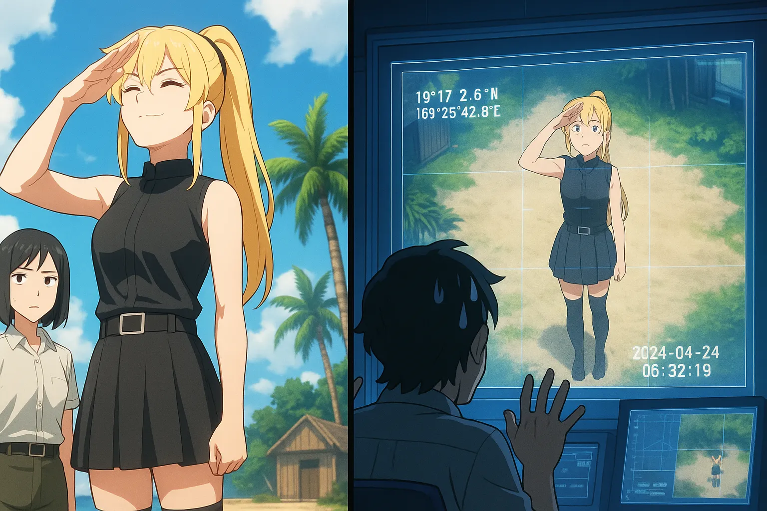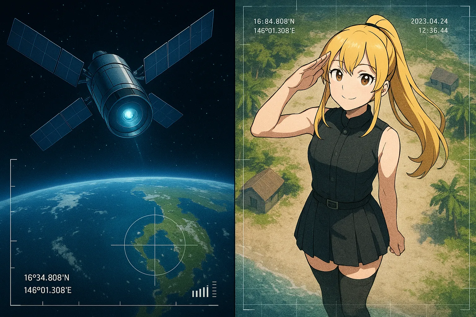 空を飛ぶ(?)人間がいるという情報を聞きつけ、衛星を使って監視をしているのですね
