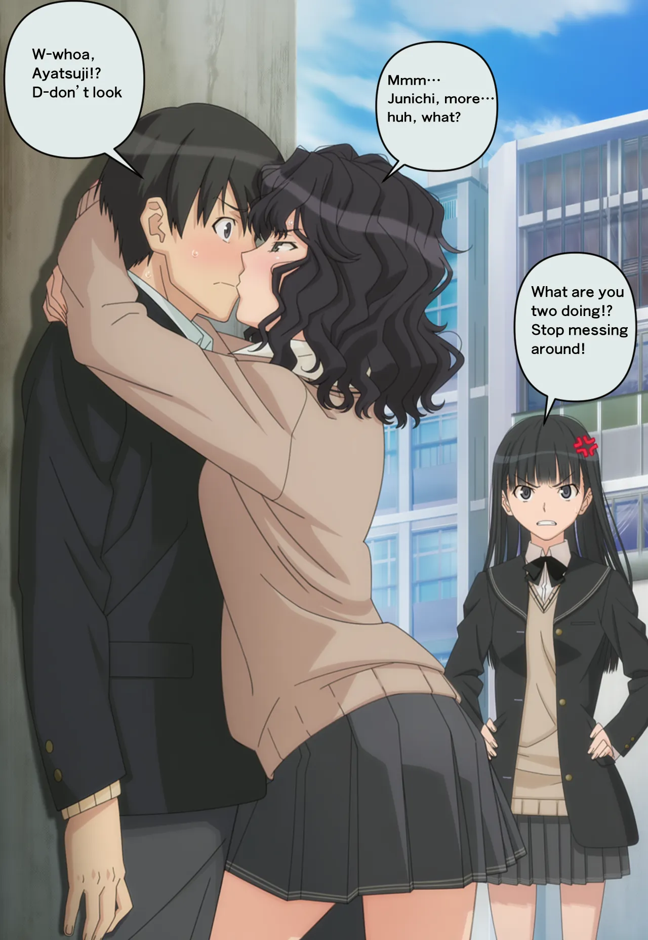 Tachibana and Tanamachi were kissing and Ayatsuji found them!