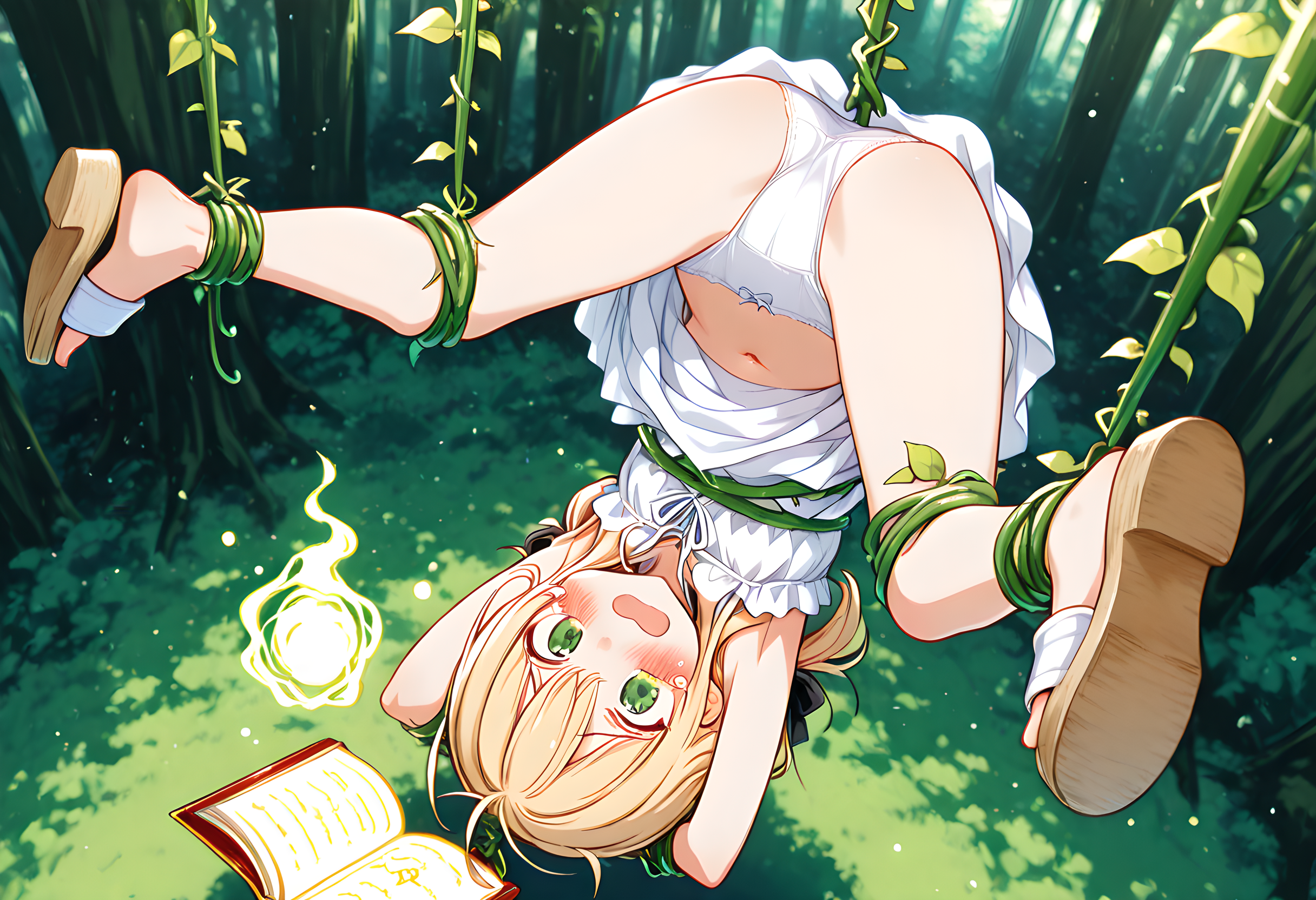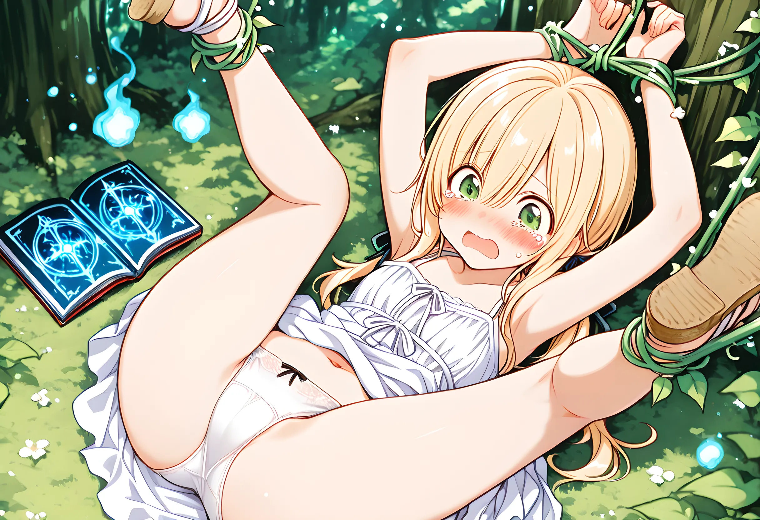 【魔法書】魔法失敗して植物に捕まる子