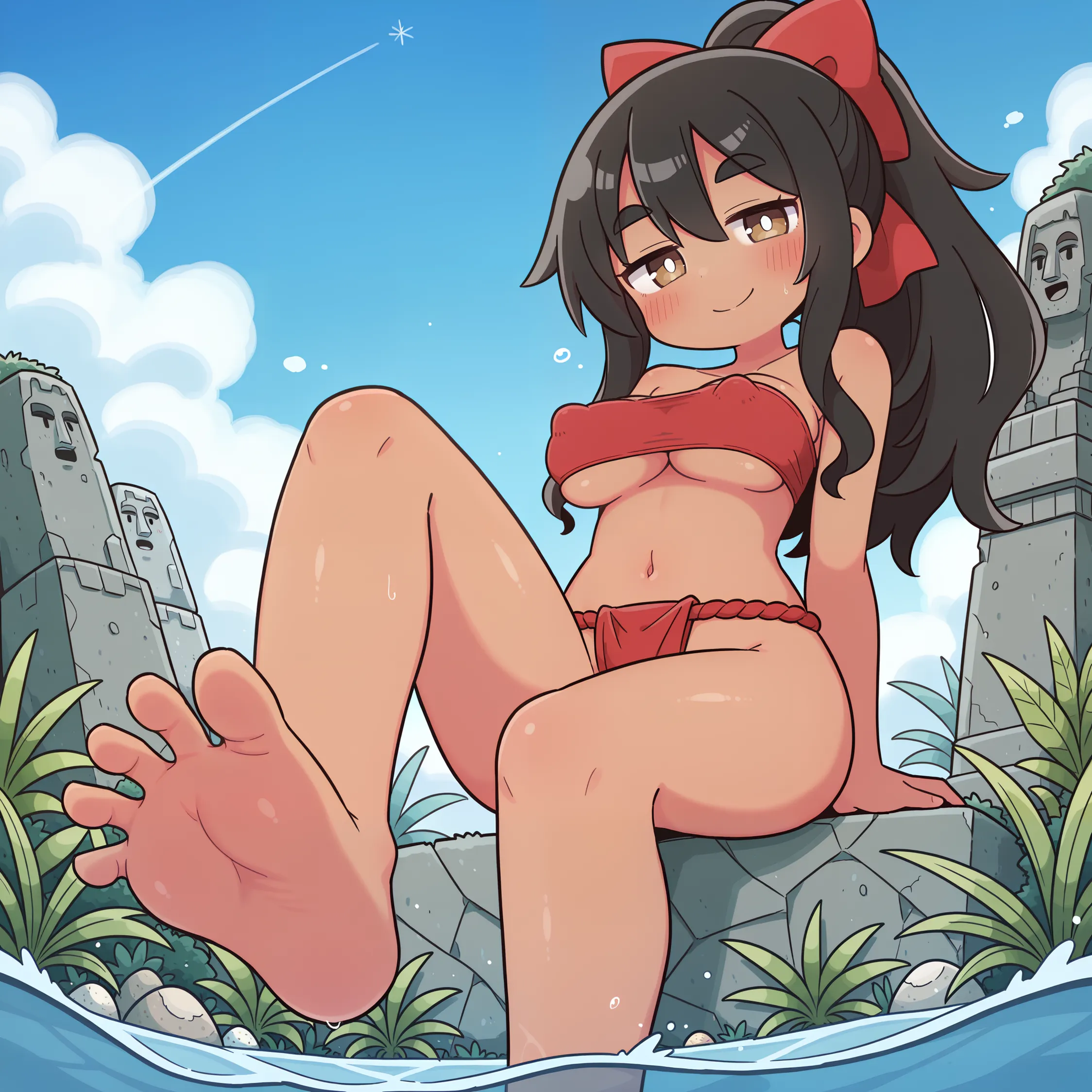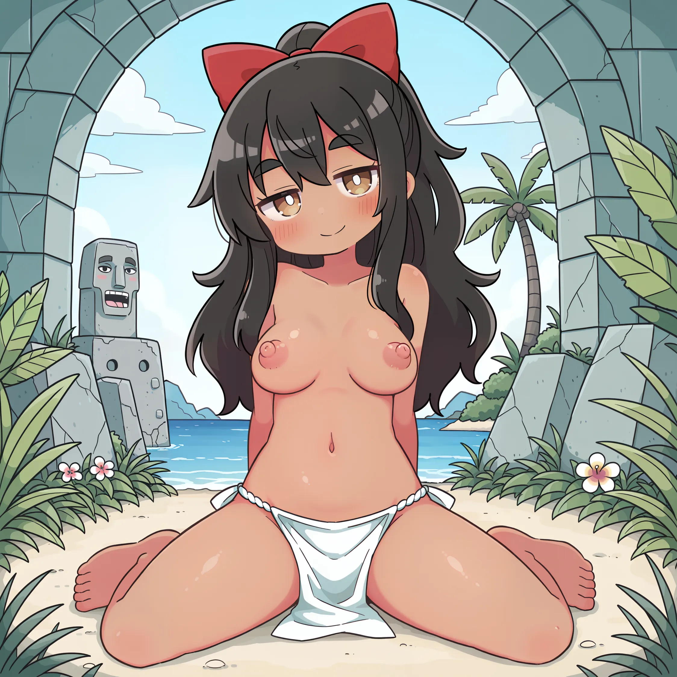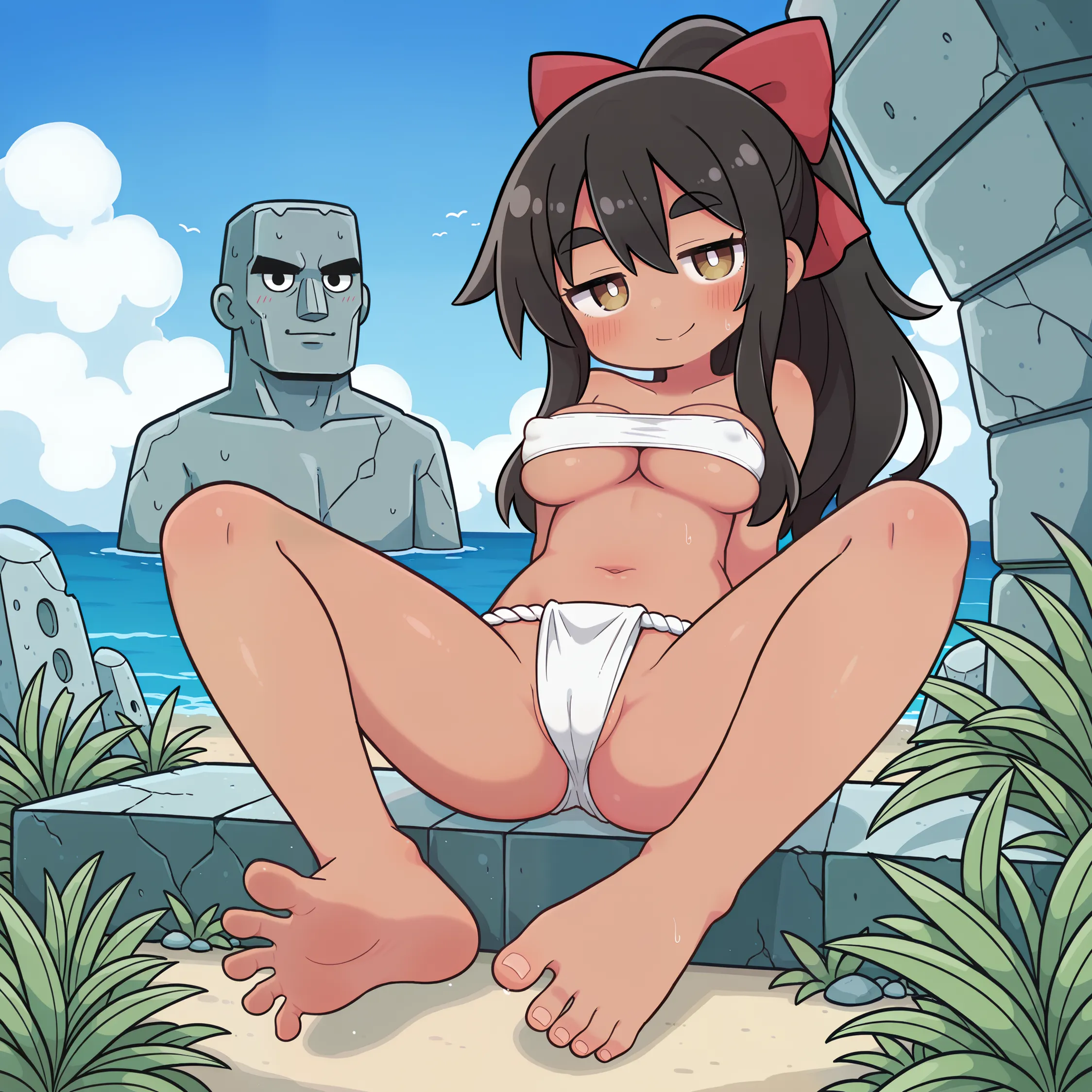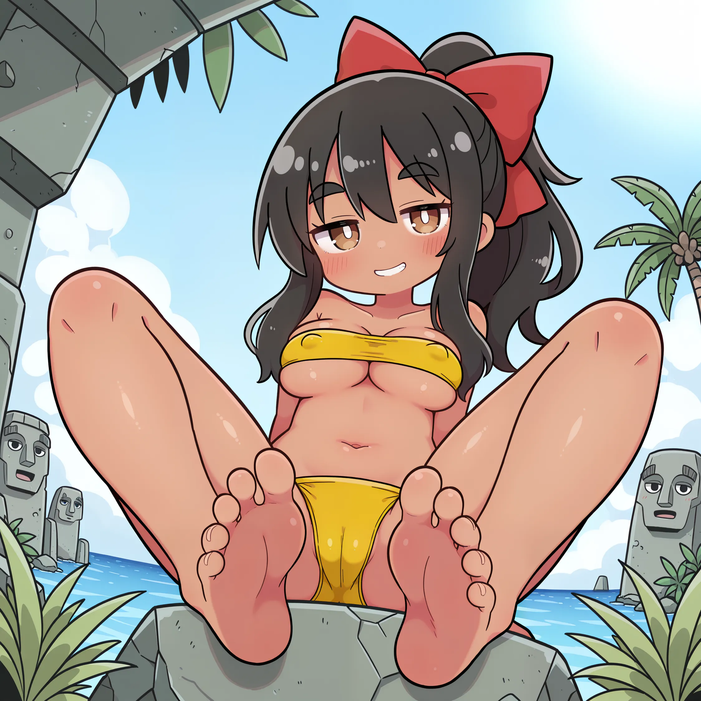 黒髪褐色ポニテちゃん