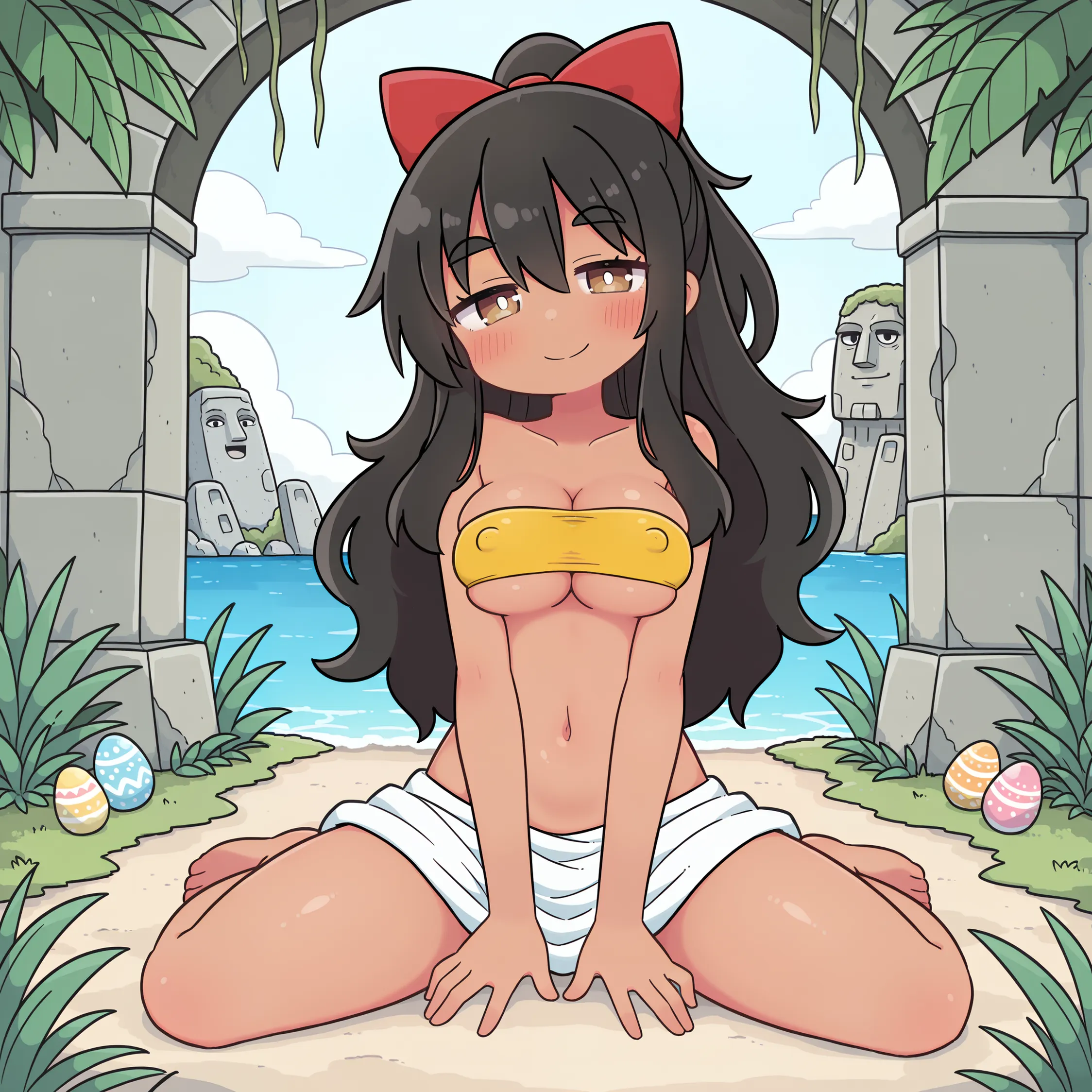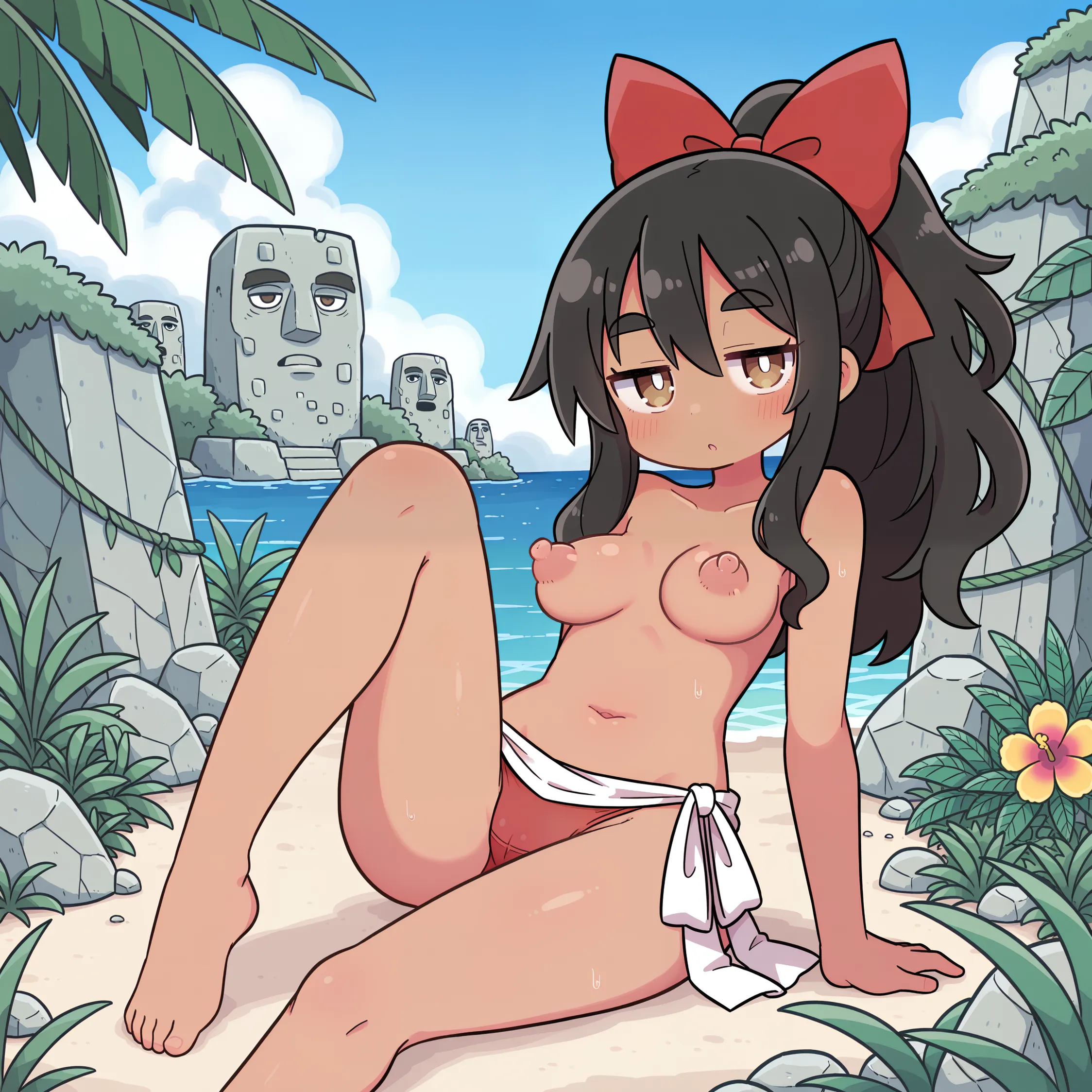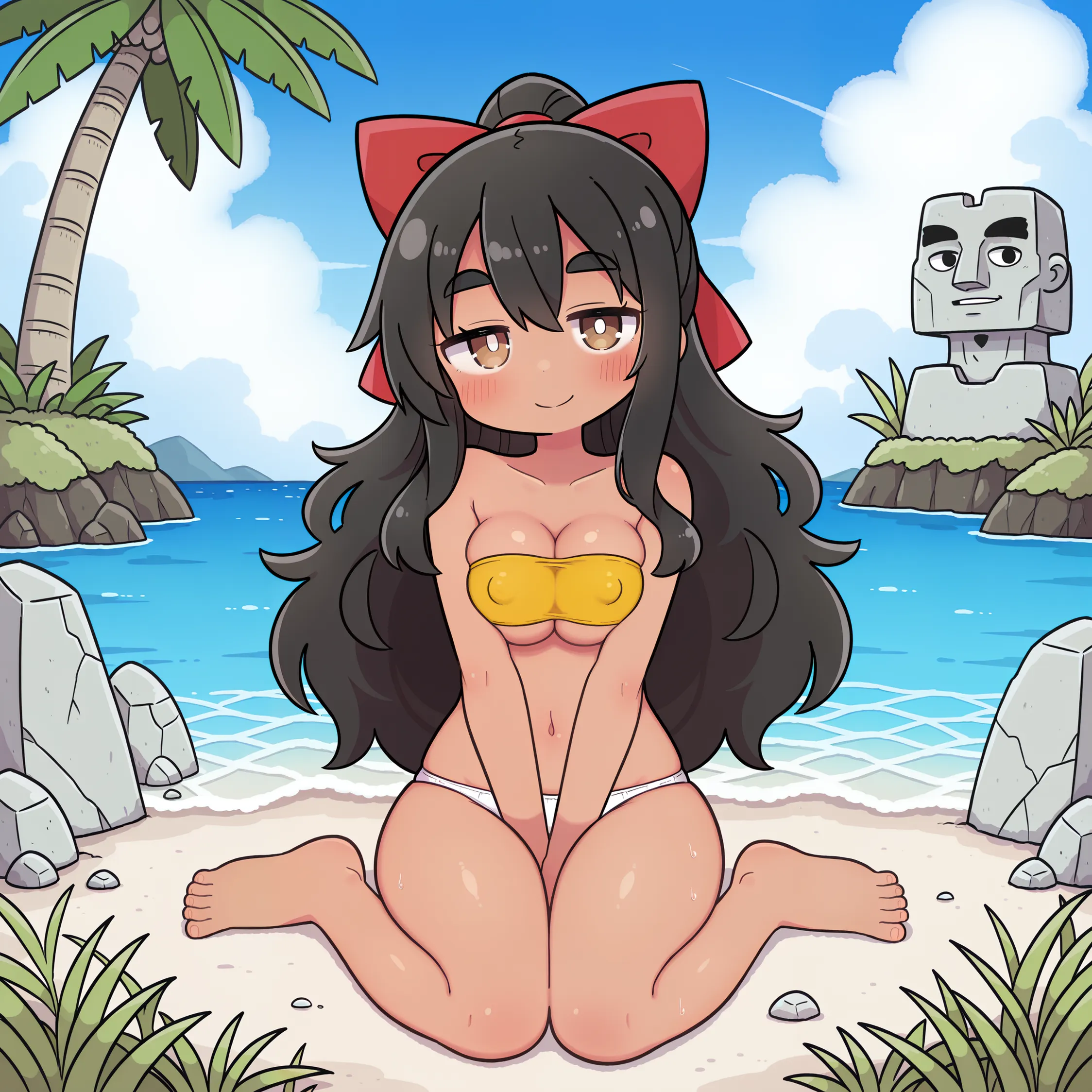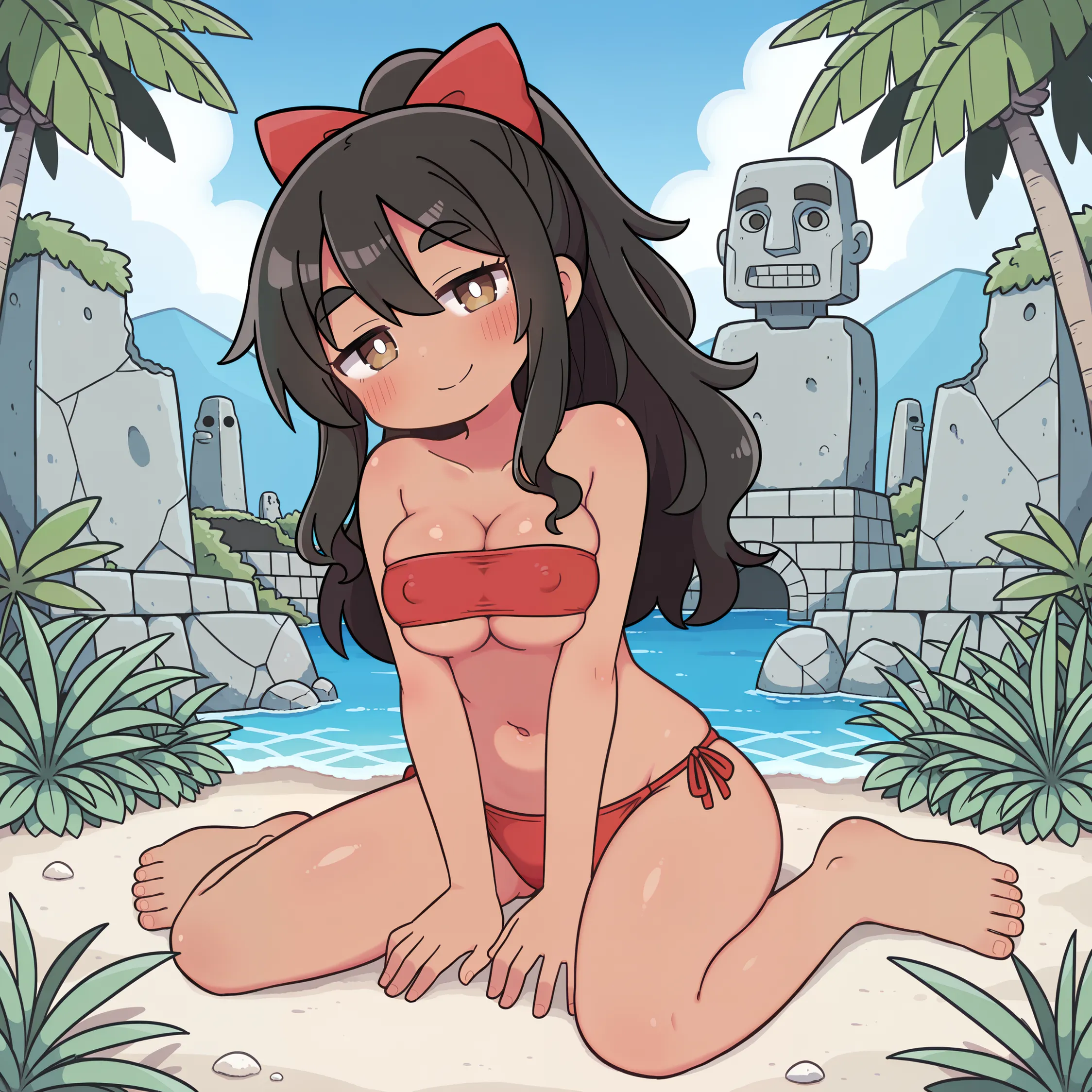 黒髪褐色ポニテちゃん
