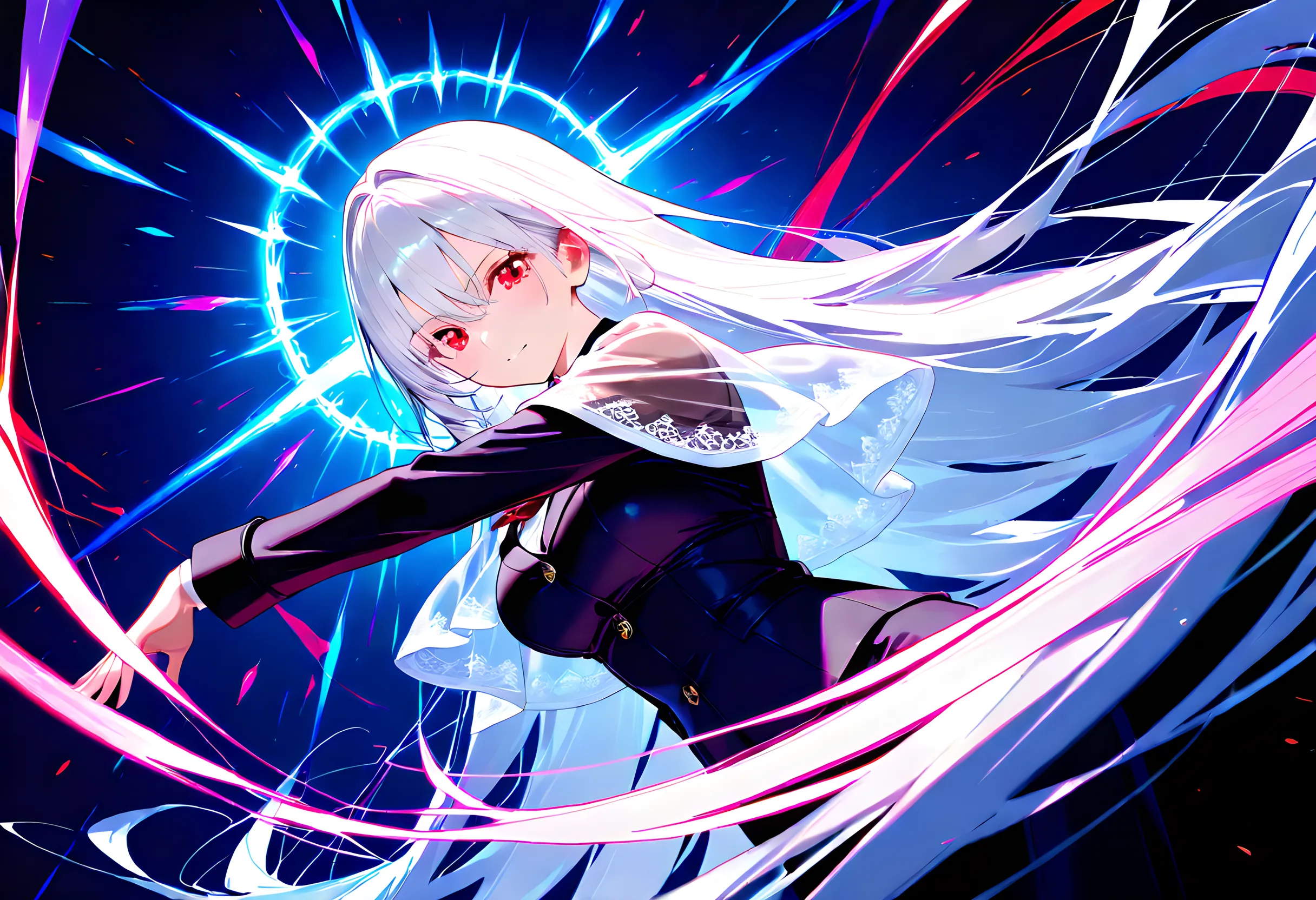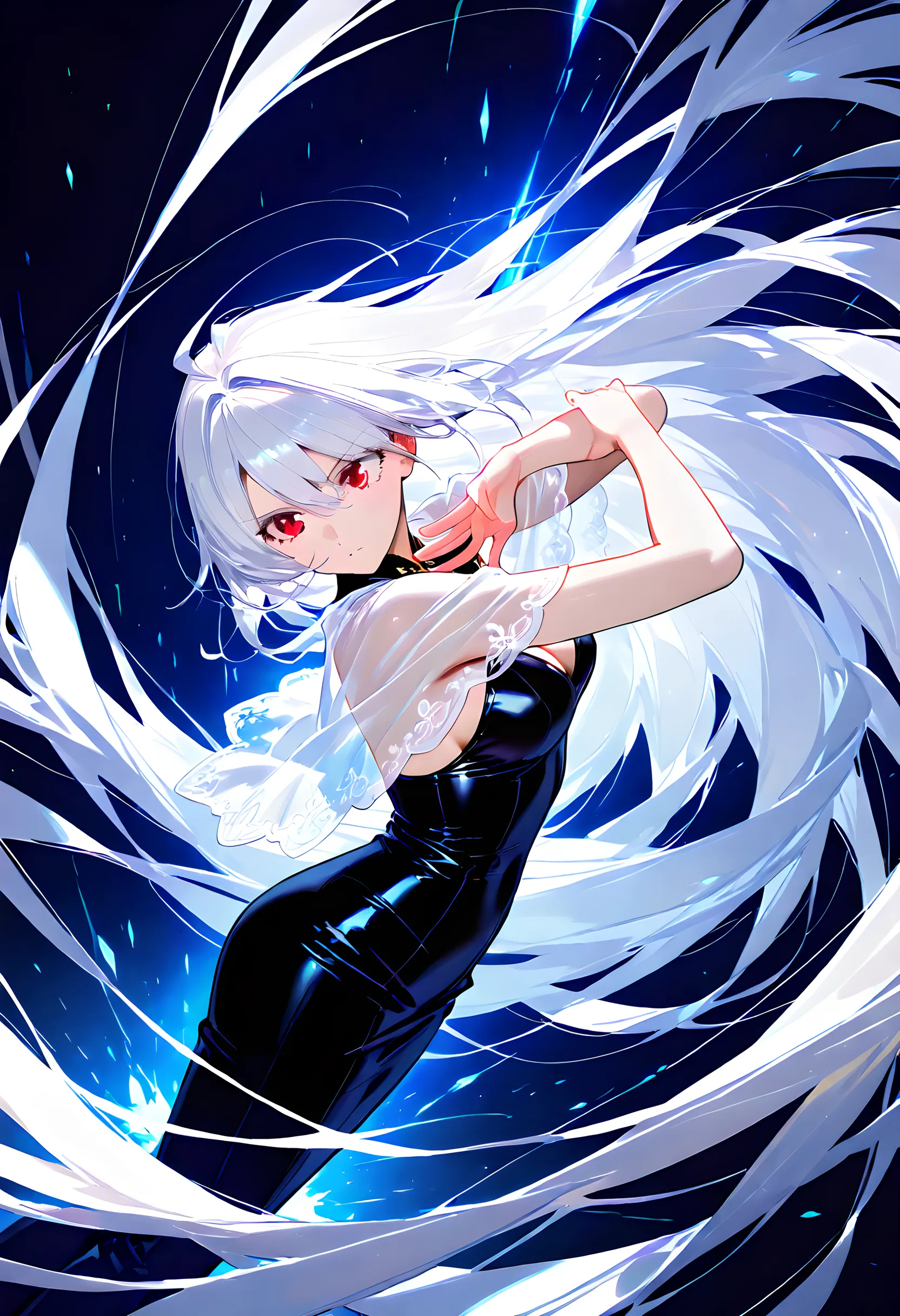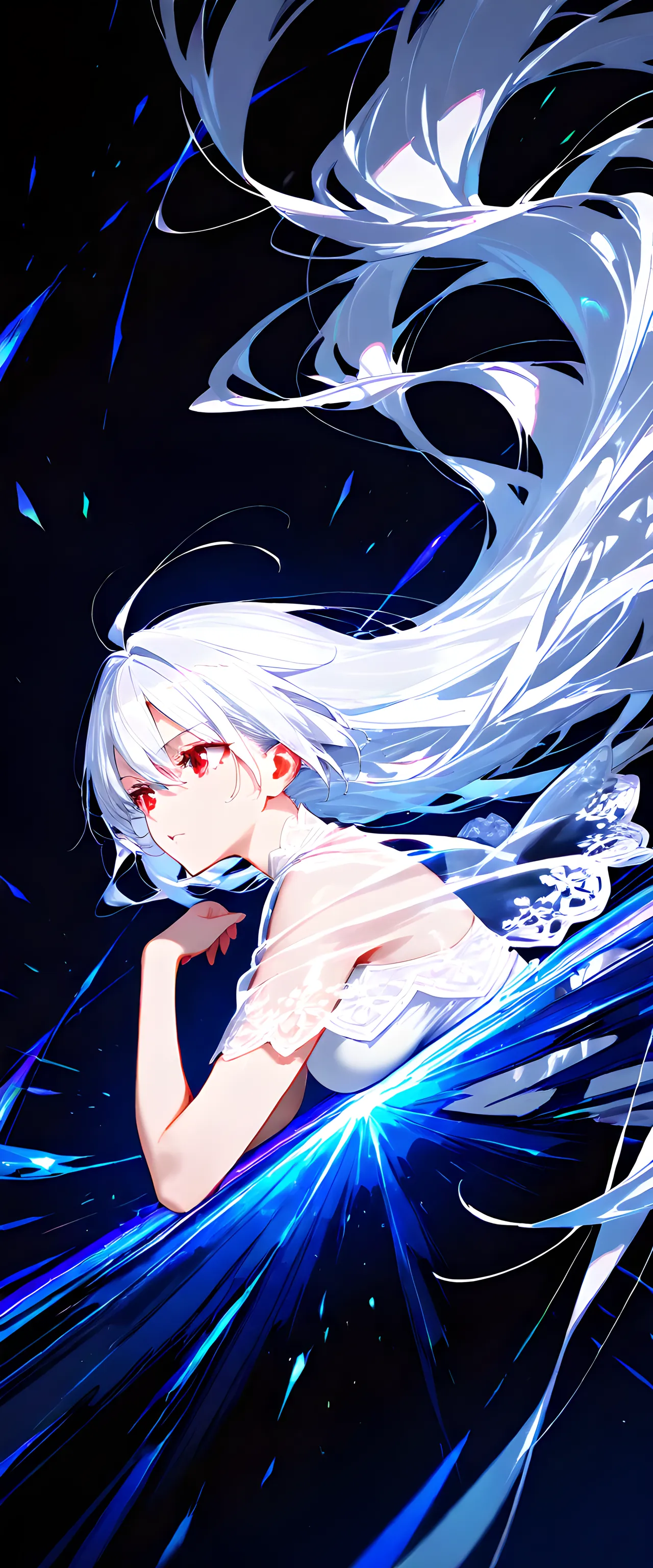 Silver-Haired Girl in Blue Vortex
