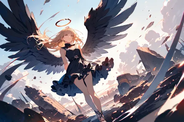 (masterpiece, best quality:1.3), illustration, (extream detailed), one girl, angel Descending