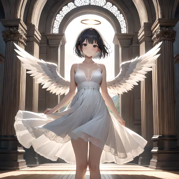 (masterpiece, best quality:1.3), illustration, (extream detailed), one girl, angel Descending