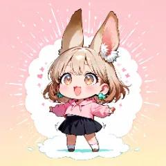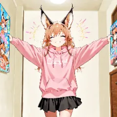 parameters: masterpiece, ultra-detailed, best quality, 1girl, (large ear cuff, chibi:1.5), pink hoodie, black skirt, white sneakers, brown medium hair, (excited expression:1.3), shouting, stylized sweat drops,