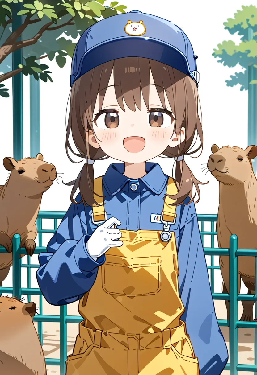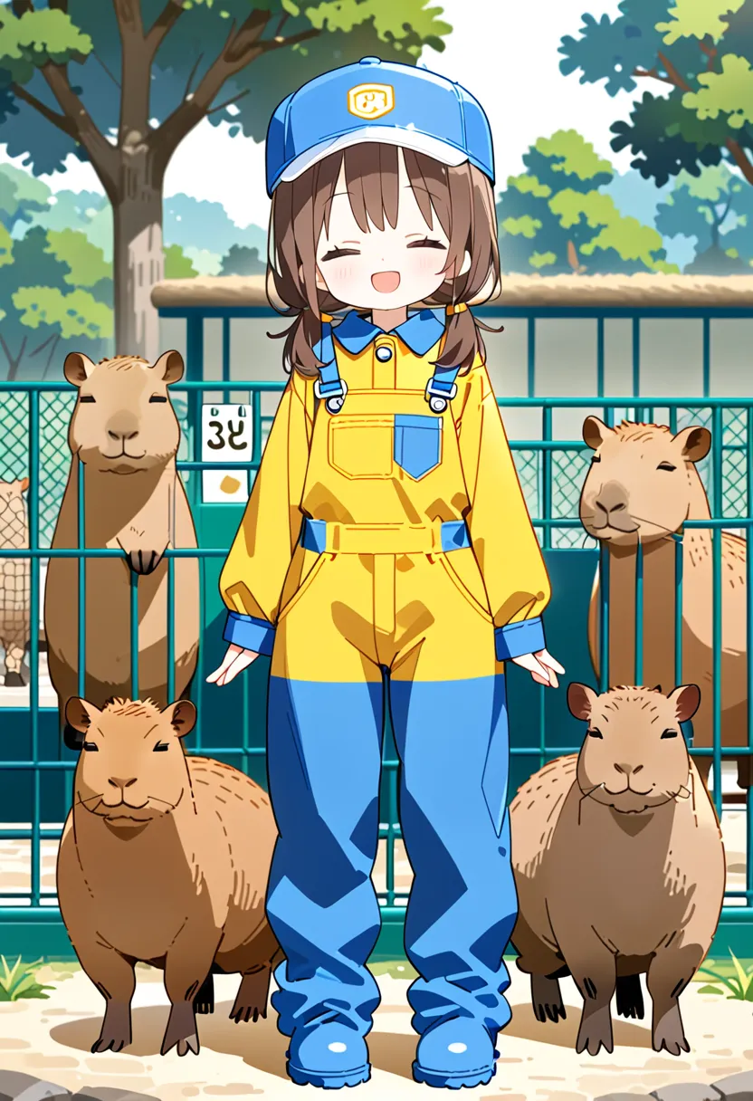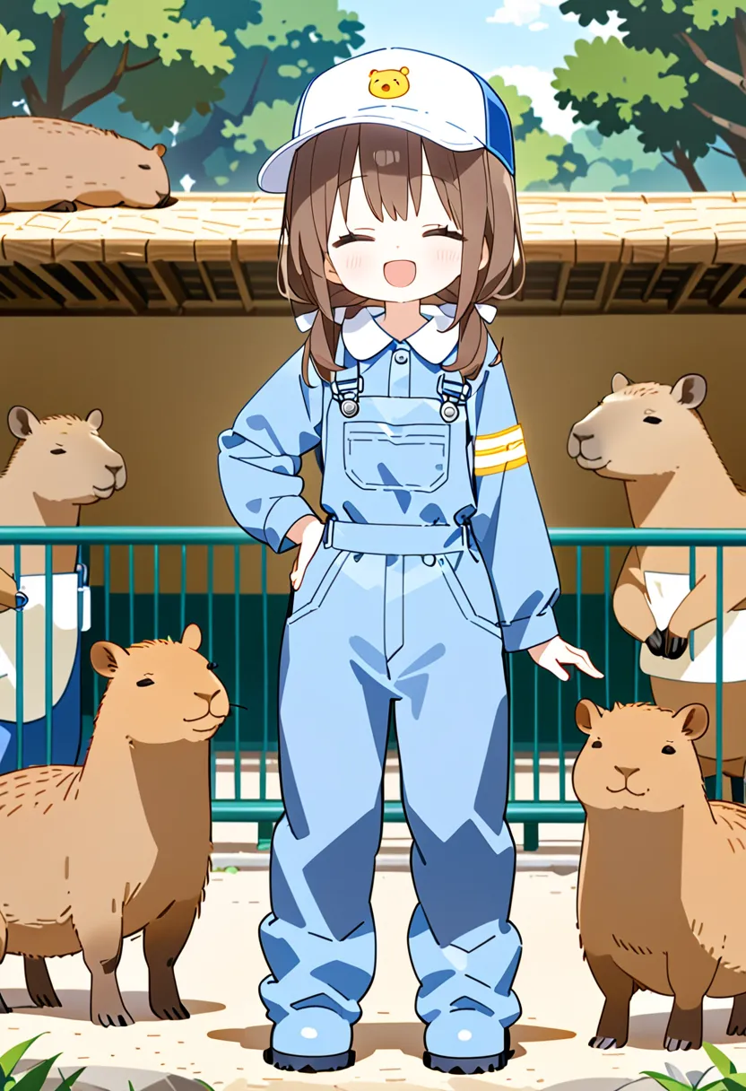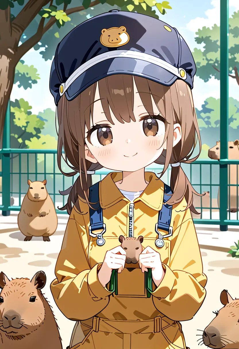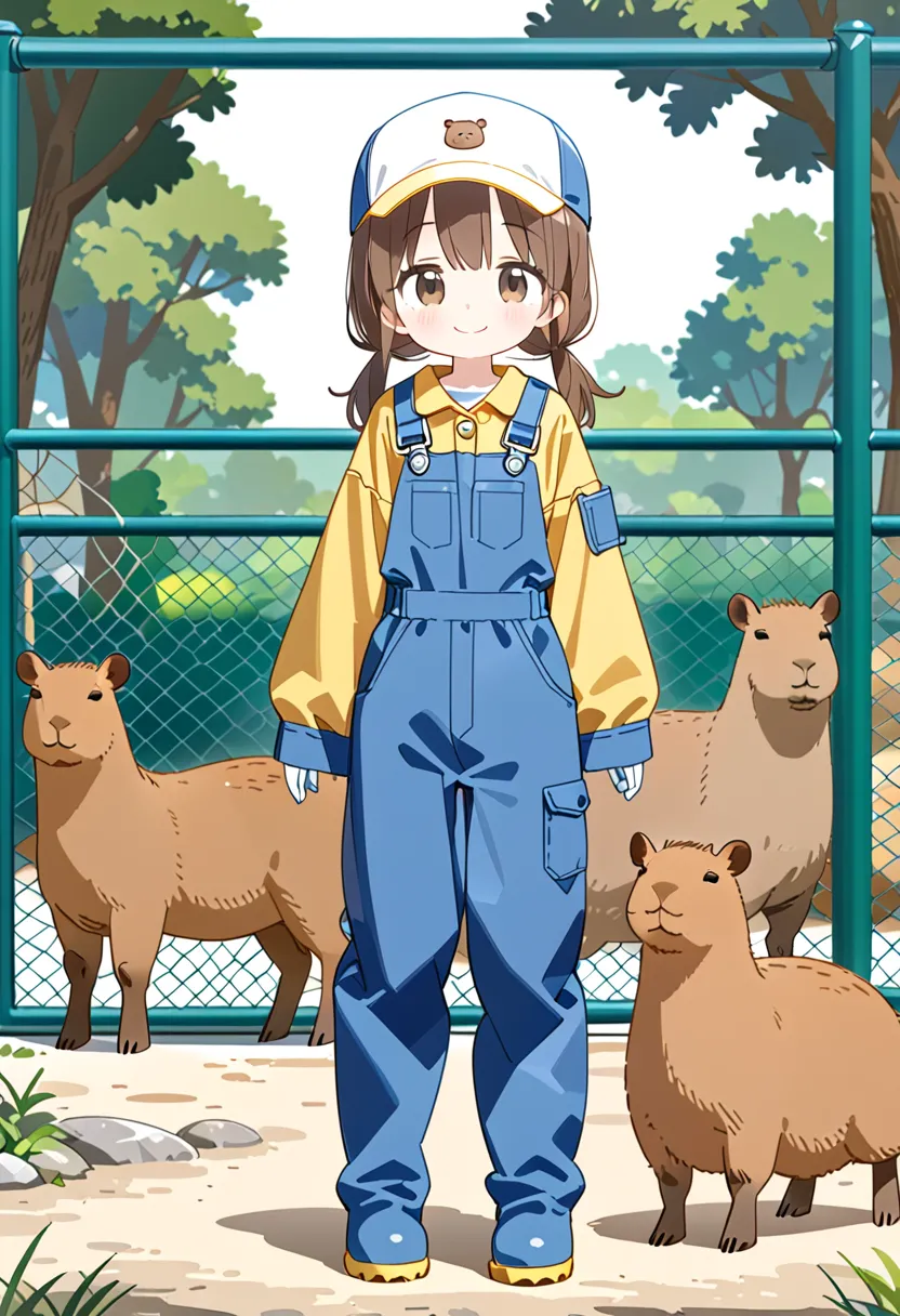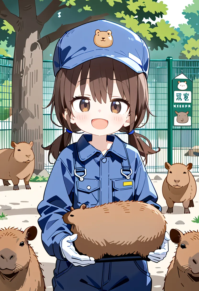 Smiling Keeper Girl in the Capybara Enclosure