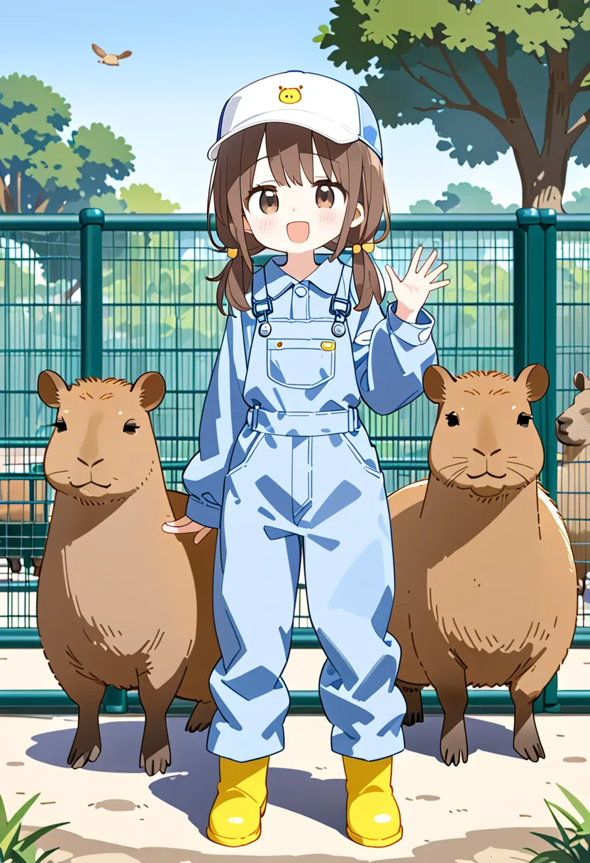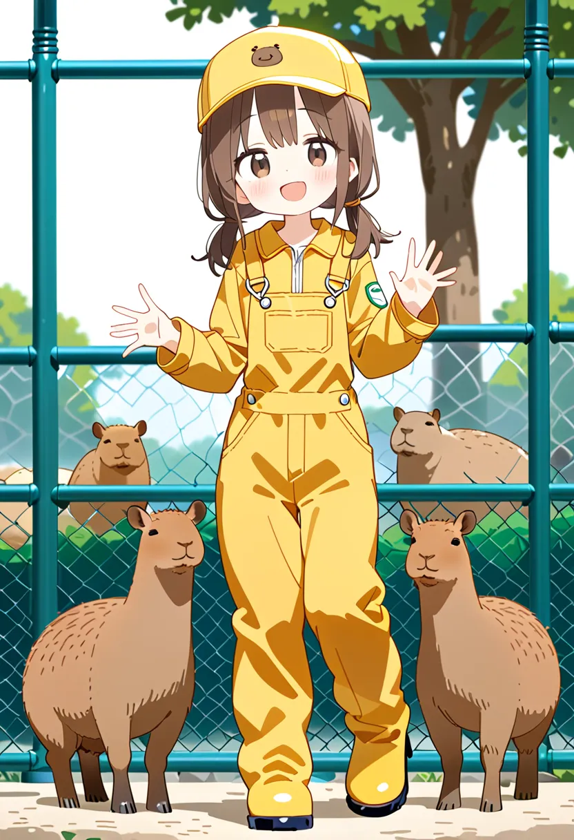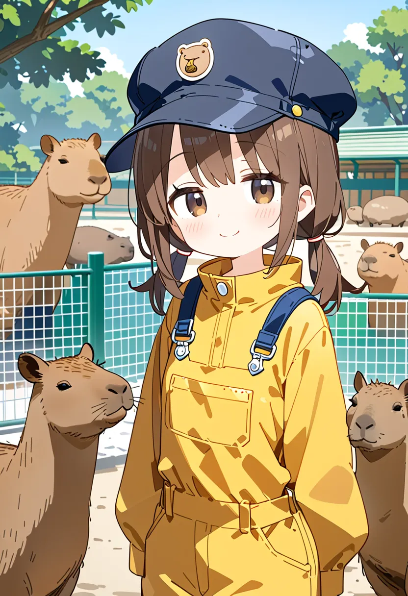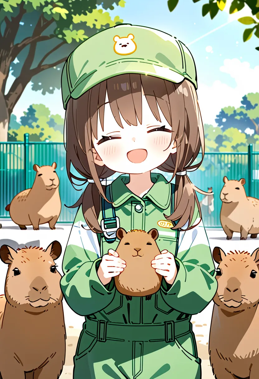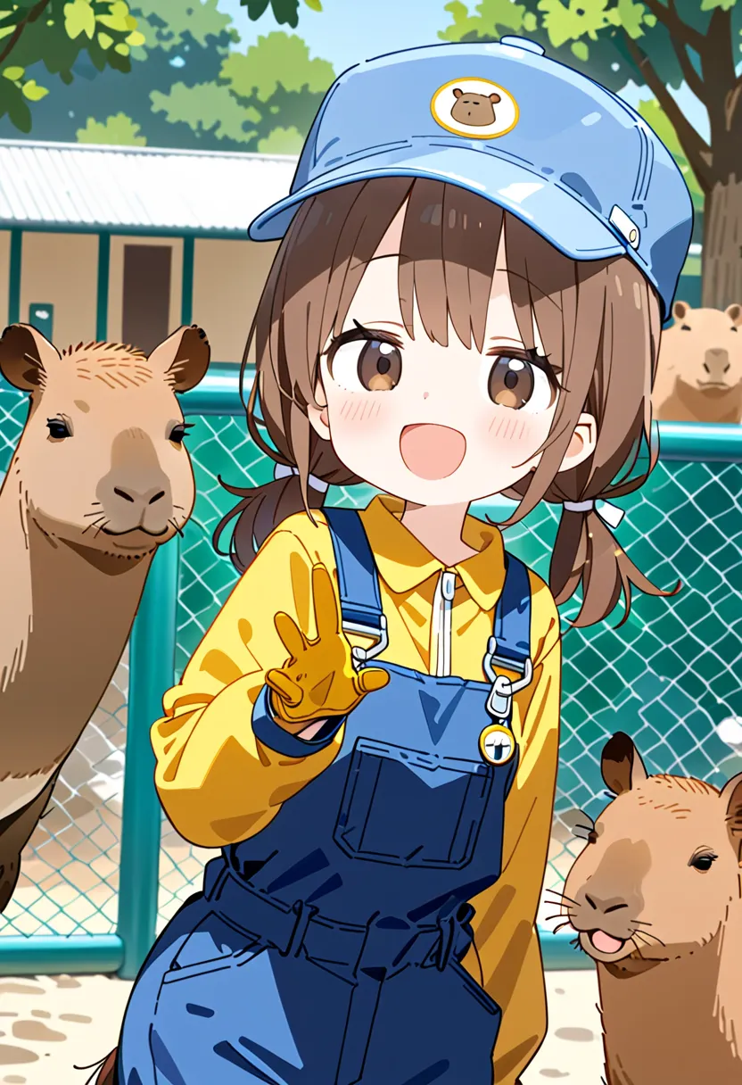 Smiling Keeper Girl in the Capybara Enclosure