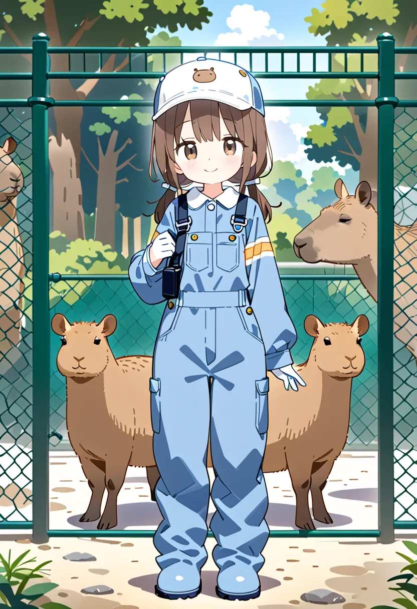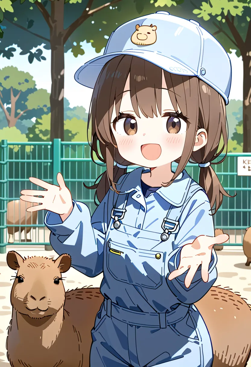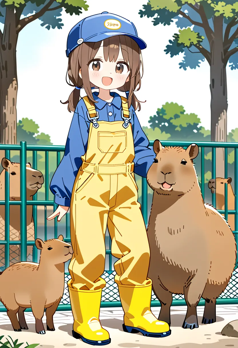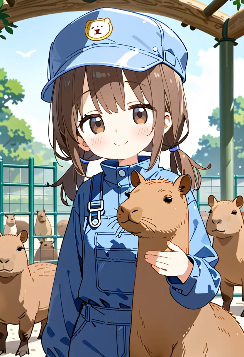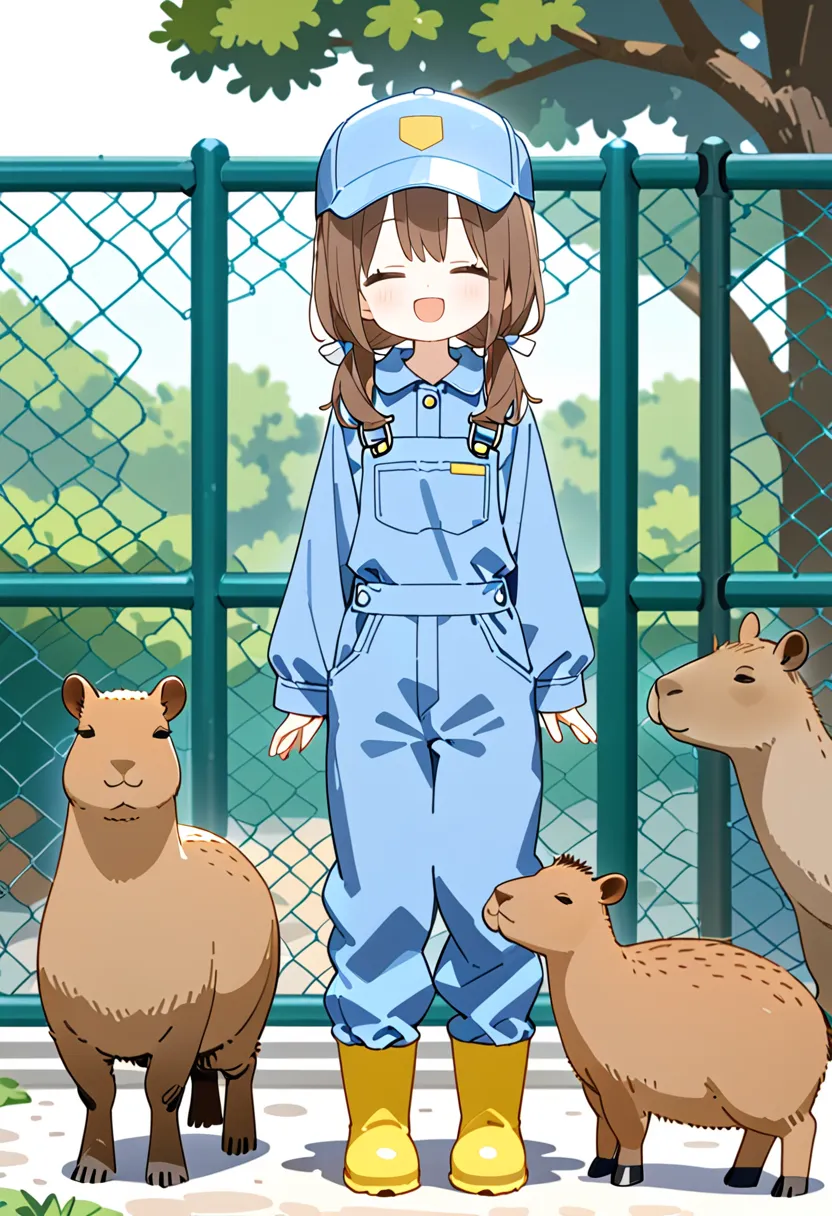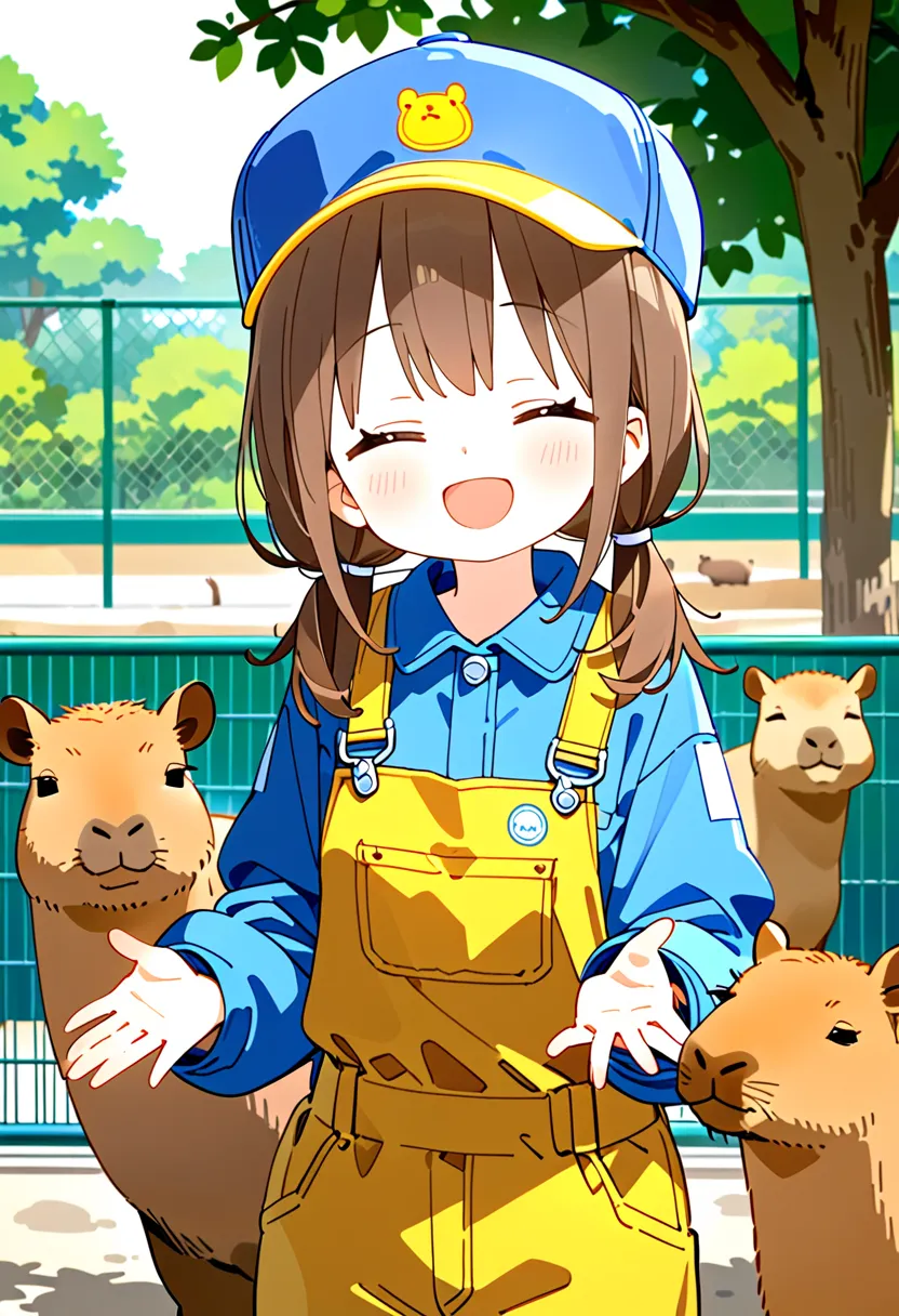 Smiling Keeper Girl in the Capybara Enclosure