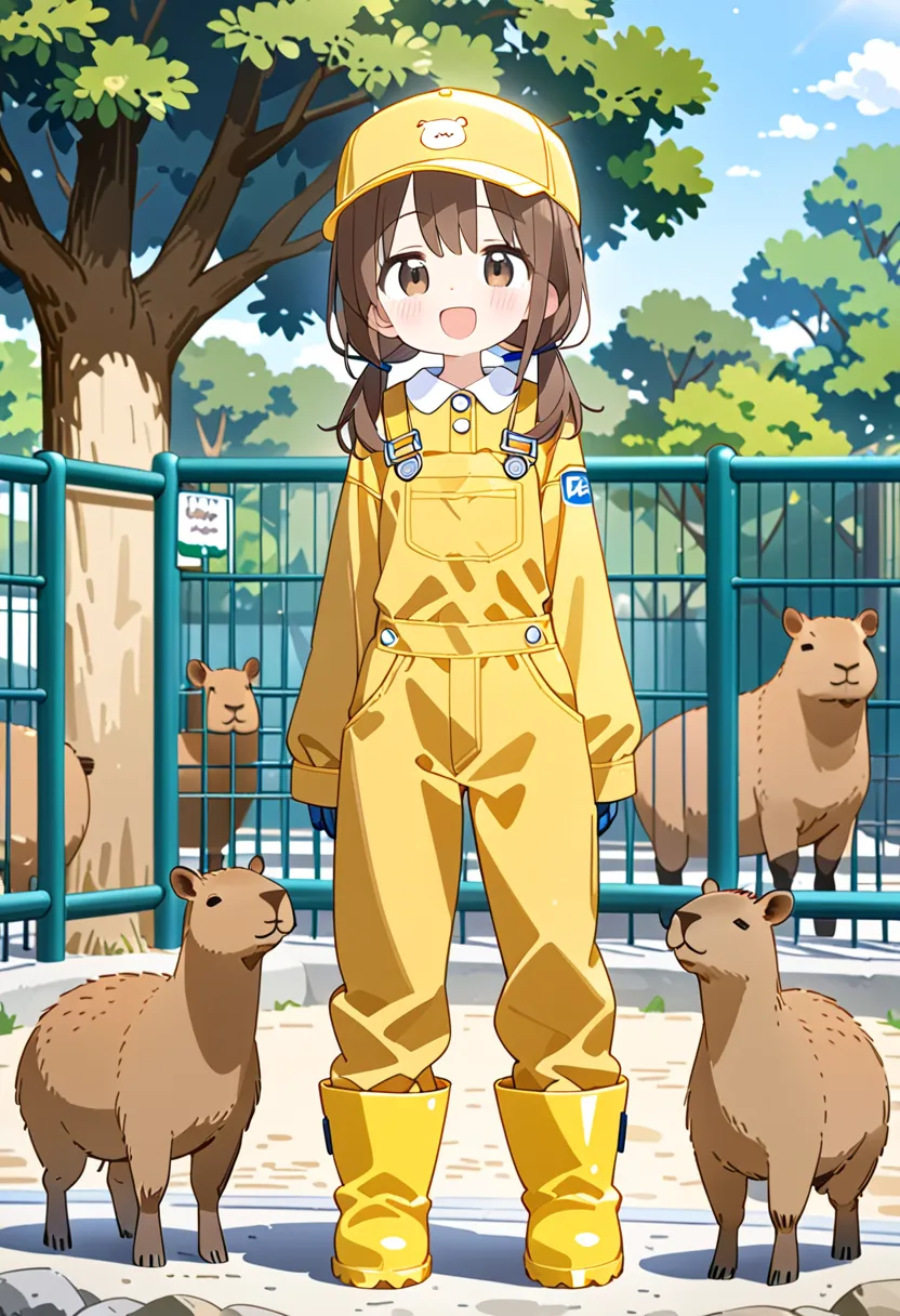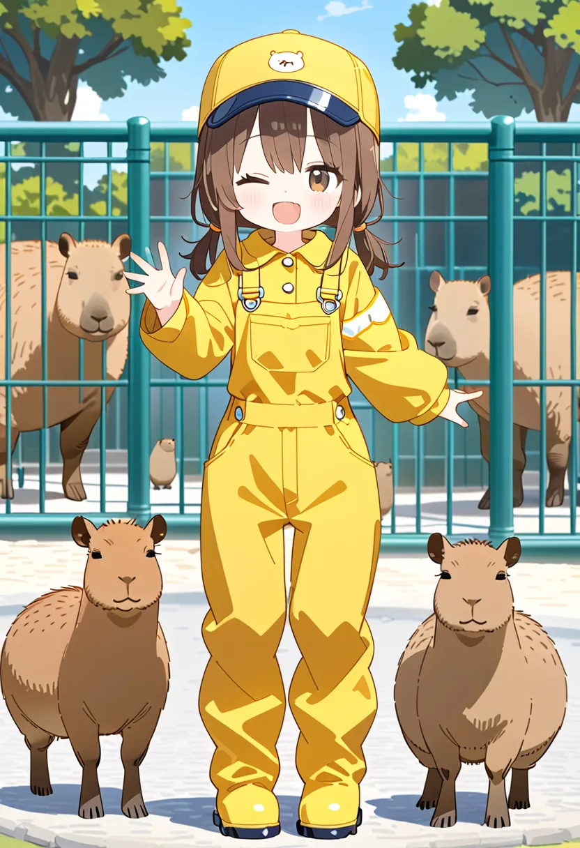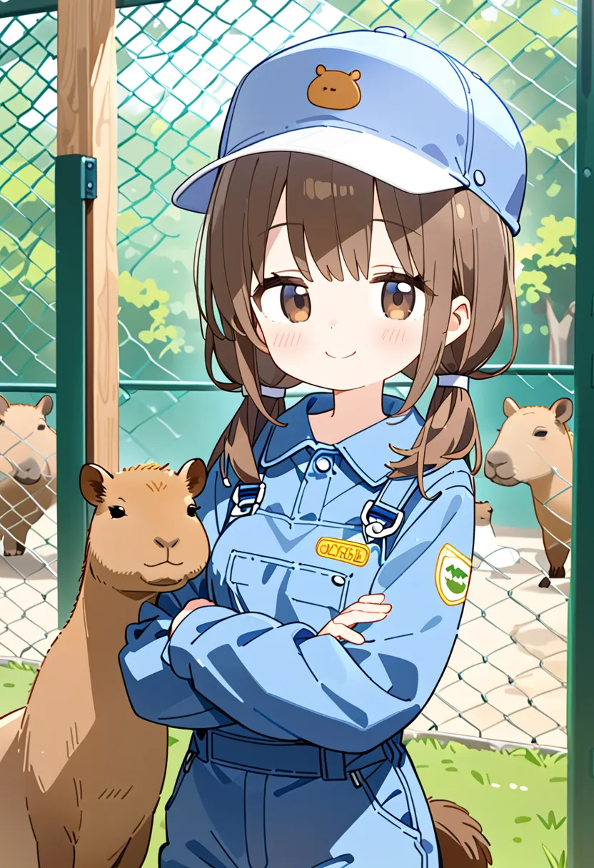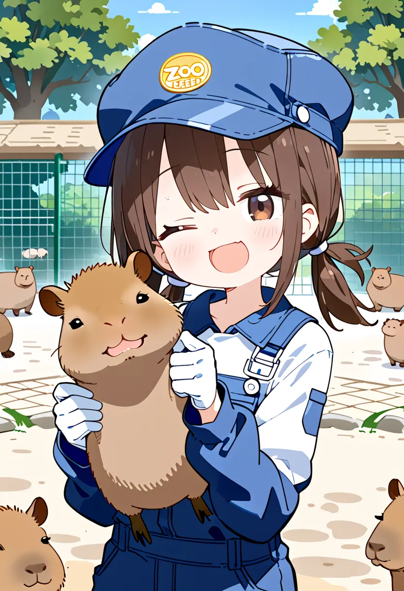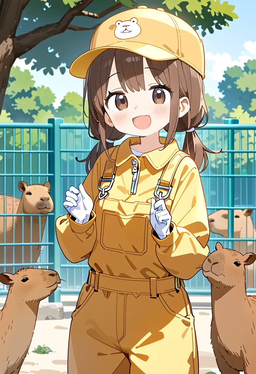 Smiling Keeper Girl in the Capybara Enclosure