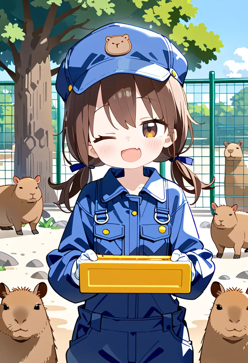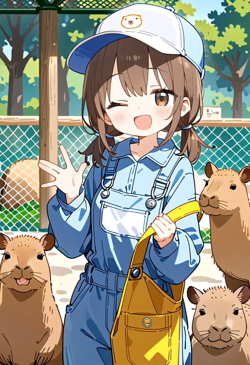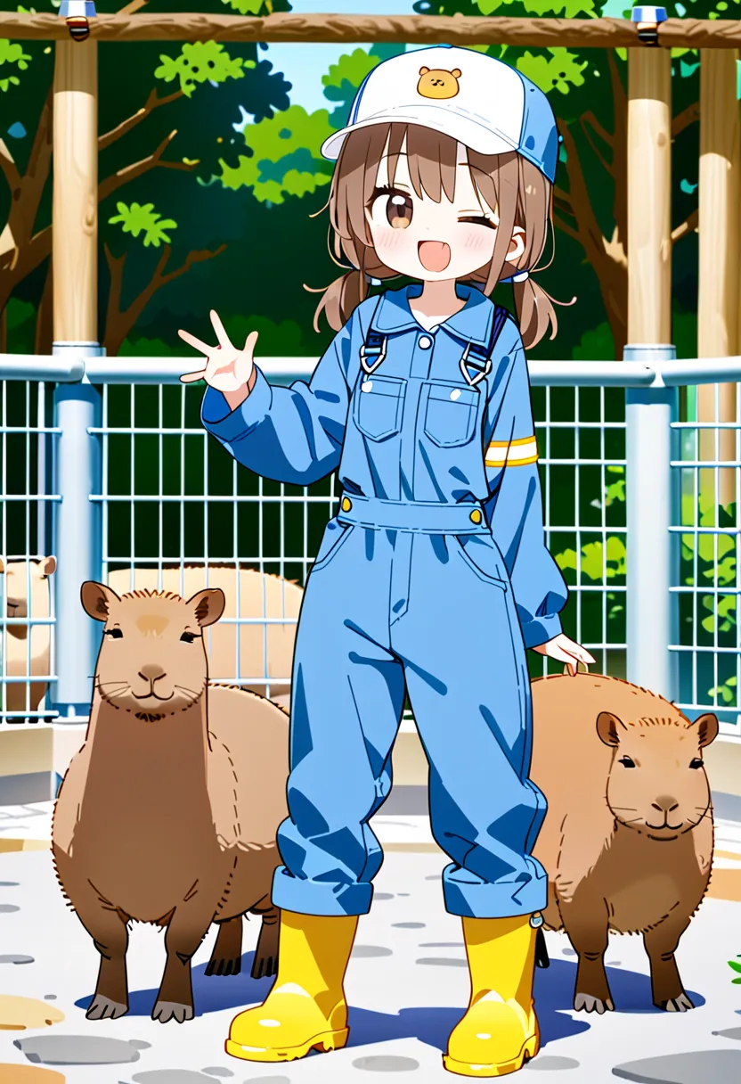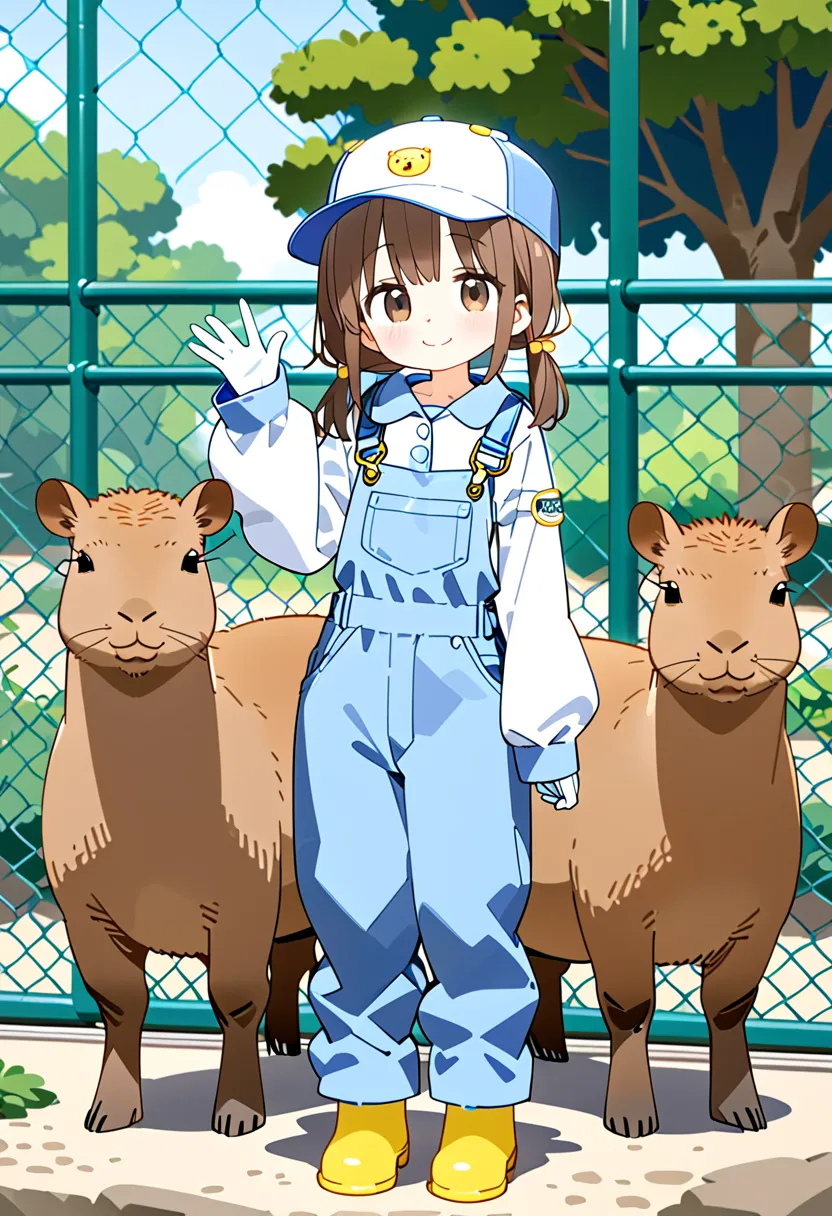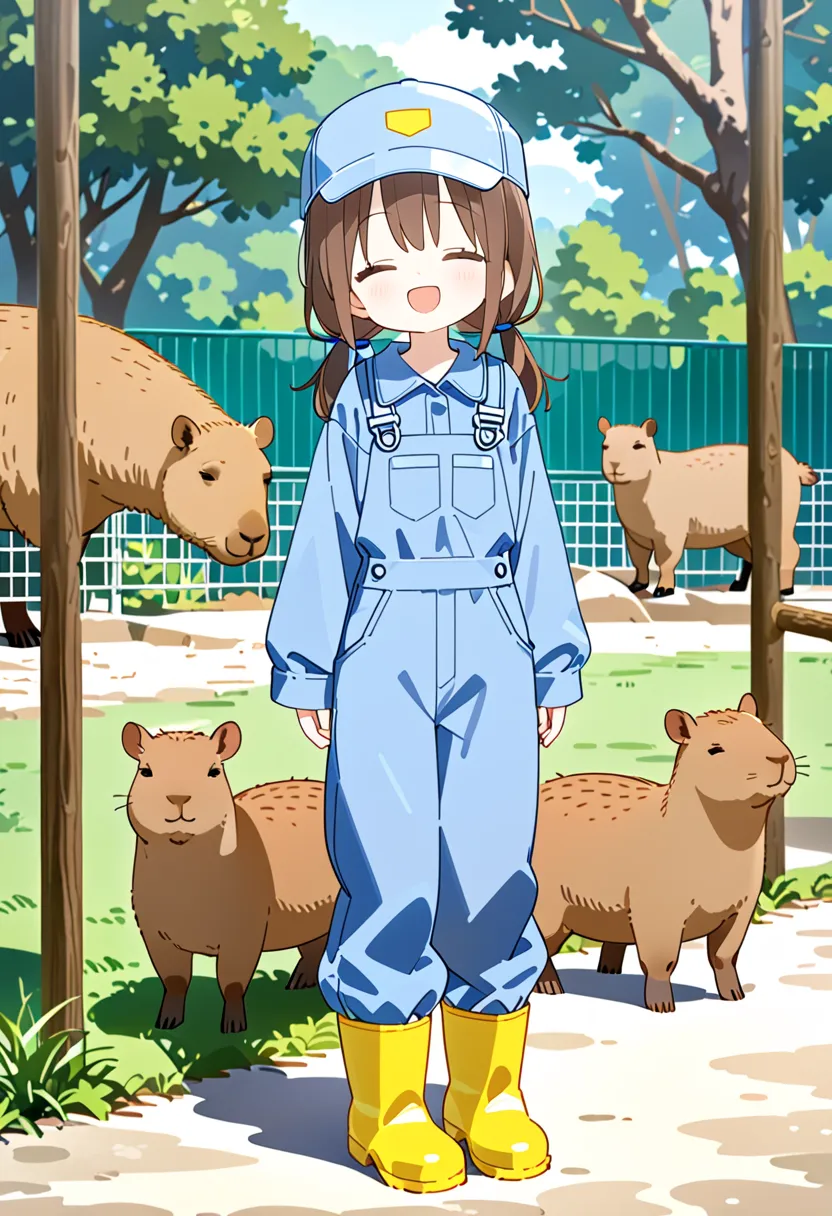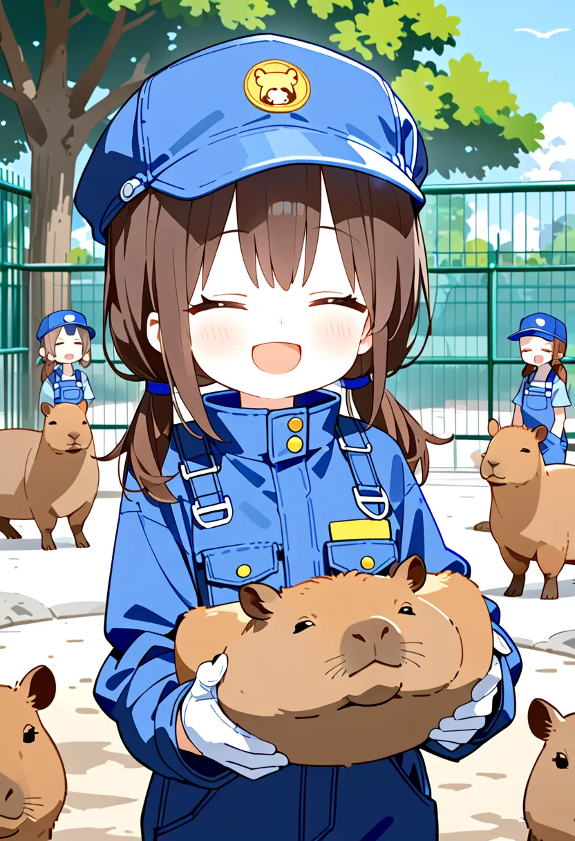 Smiling Keeper Girl in the Capybara Enclosure