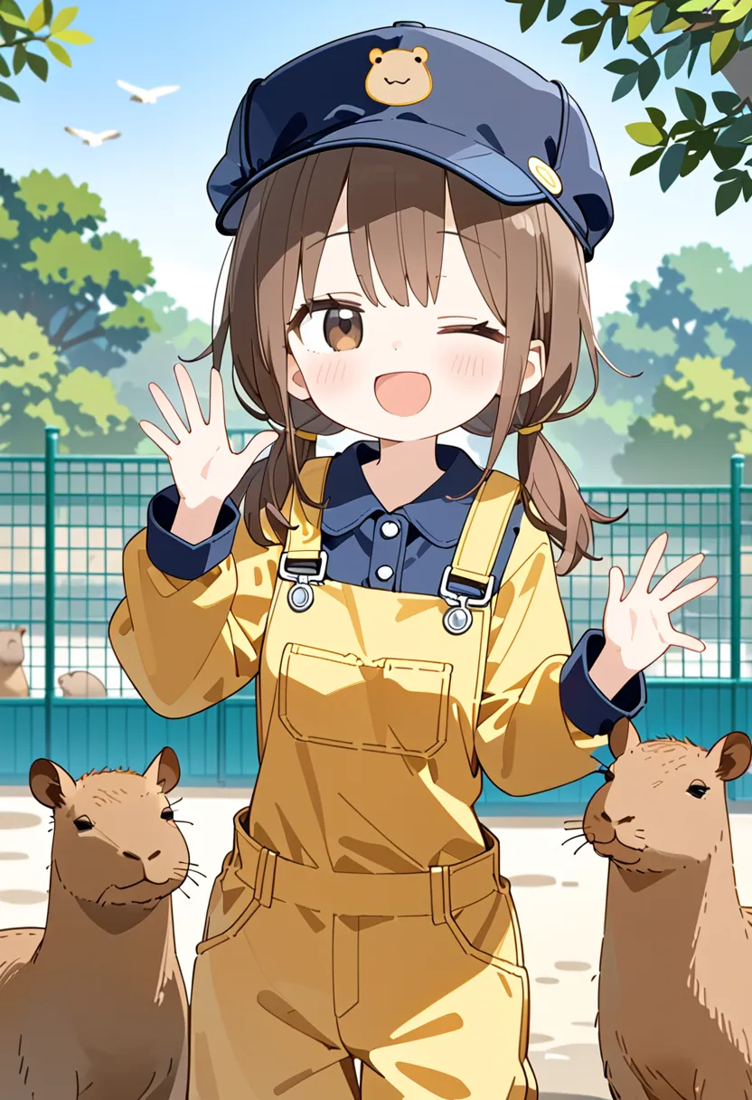 NanoBananaに「画風を変更せず、動物をカピバラに変更する」みたいな指示を出してAI修正したりするとどうでしょう?自分で試しもせず思い付きで言ってしまってて申し訳ないんですけど、普通の生成方法で出ない描写を出せる事があるかもしれません(自分の作品だと、将棋お題の時の銀将ちゃんを将棋盤の上に立たせたりできました)。