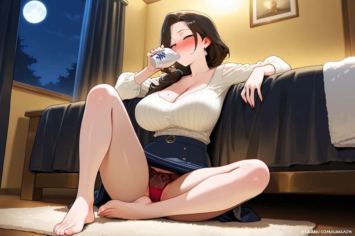 スカートから赤い月が見えてます