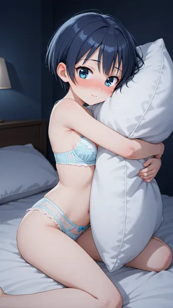 parameters: masterpiece, best quality, high definition, incredibly absurdres, anime, cute, pretty, adorable, charming, lovely, absurdly beautiful preteen, petite, small breasts, (tsurime:0.5), (round face:1.5), blue eyes, dark blue hair, very short hair, (forehead, ahoge:-1.0), school uniform, camel cardigan, red striped bowtie, dark blue plaid skirt, dark blue ancle socks, undressing panties, embarrassed, nose blush, mahjong table,