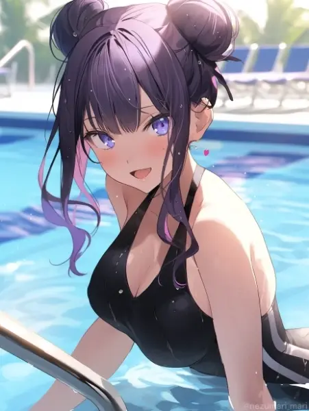 お団子ヘア+水着